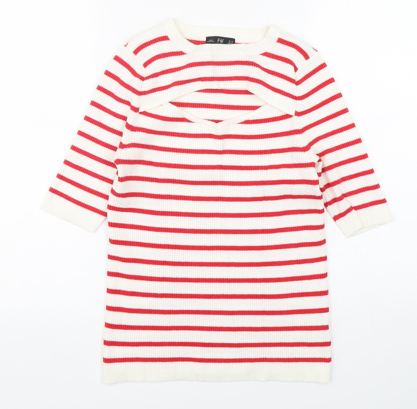 F&F Womens Multicoloured Round Neck Striped Viscose Pullover Jumper Size 10