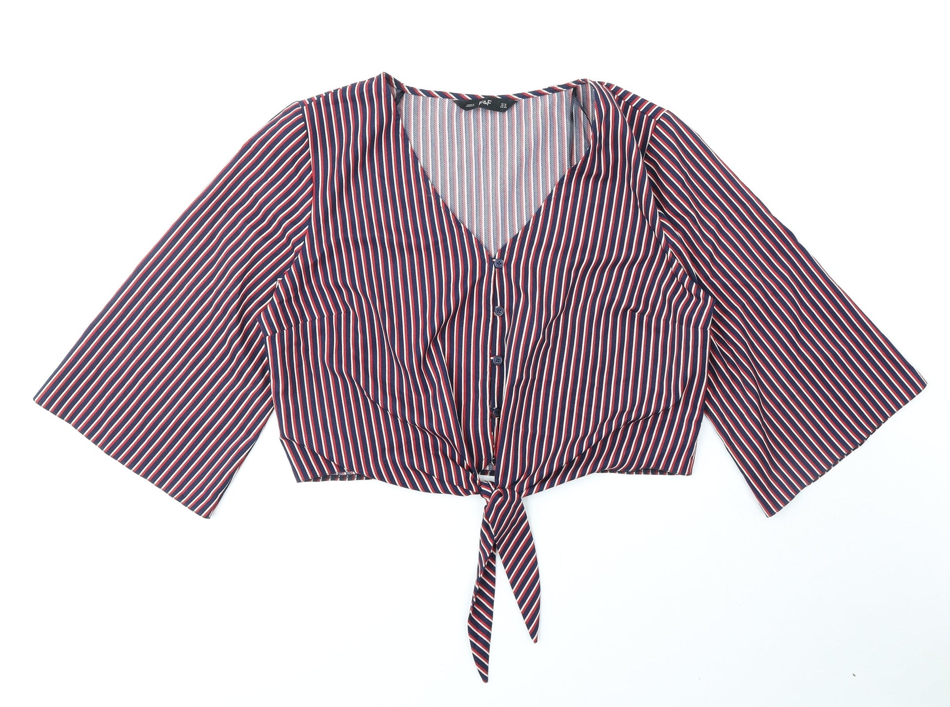 F&F Womens Multicoloured Striped Polyester Cropped Button-Up Size 16 V-Neck