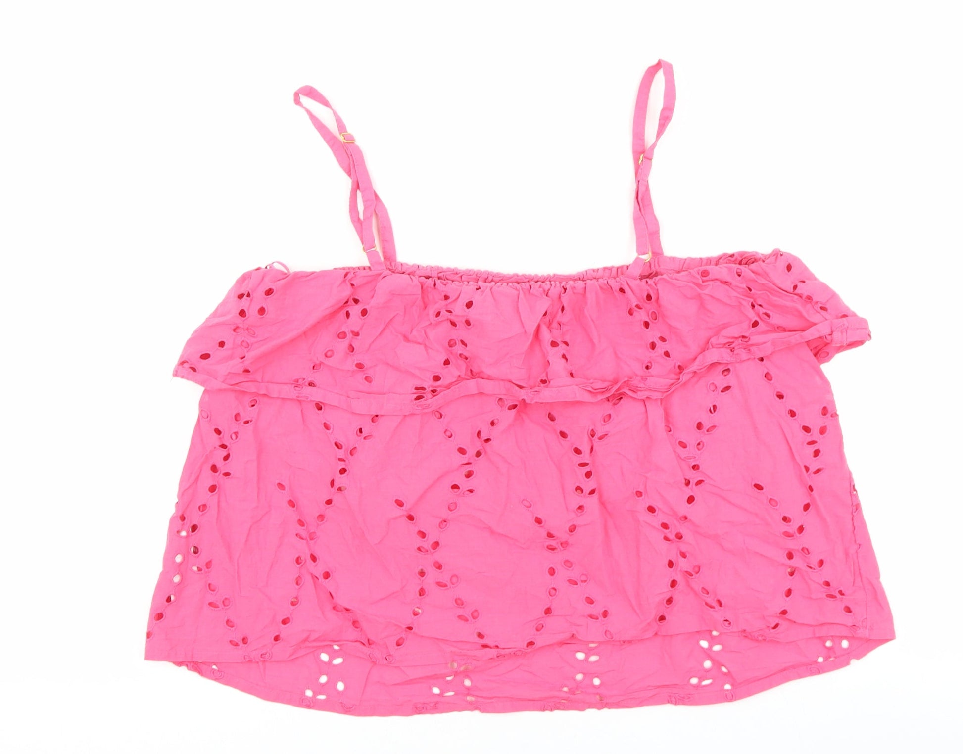 F&F Womens Orange Geometric Cotton Cropped Tank Size 14 Square Neck