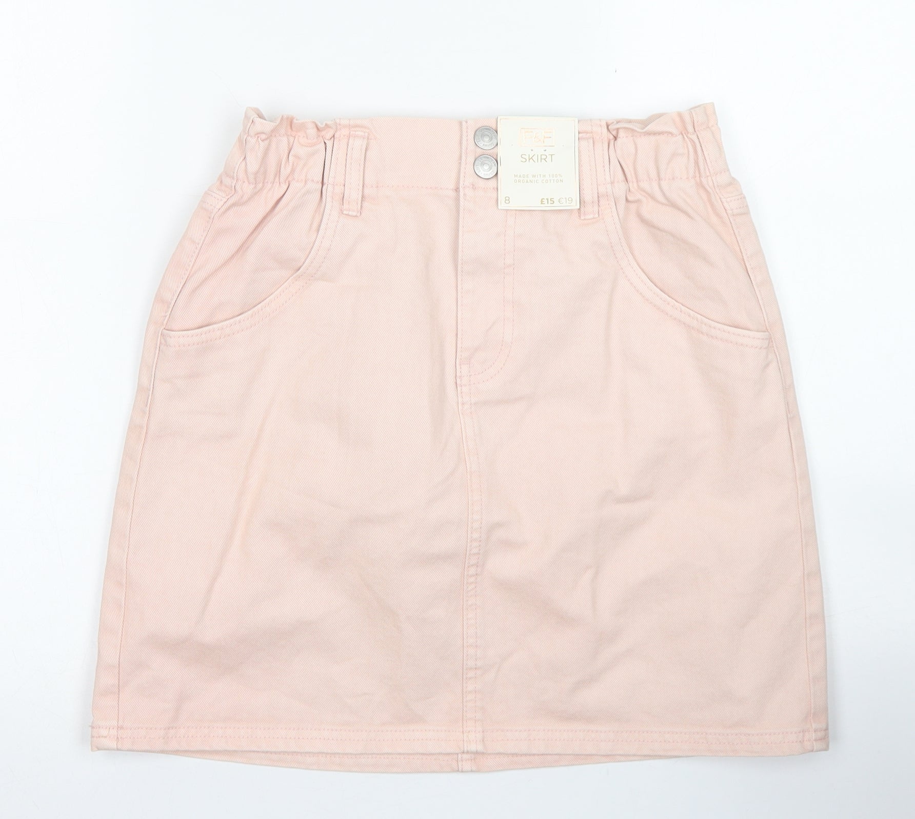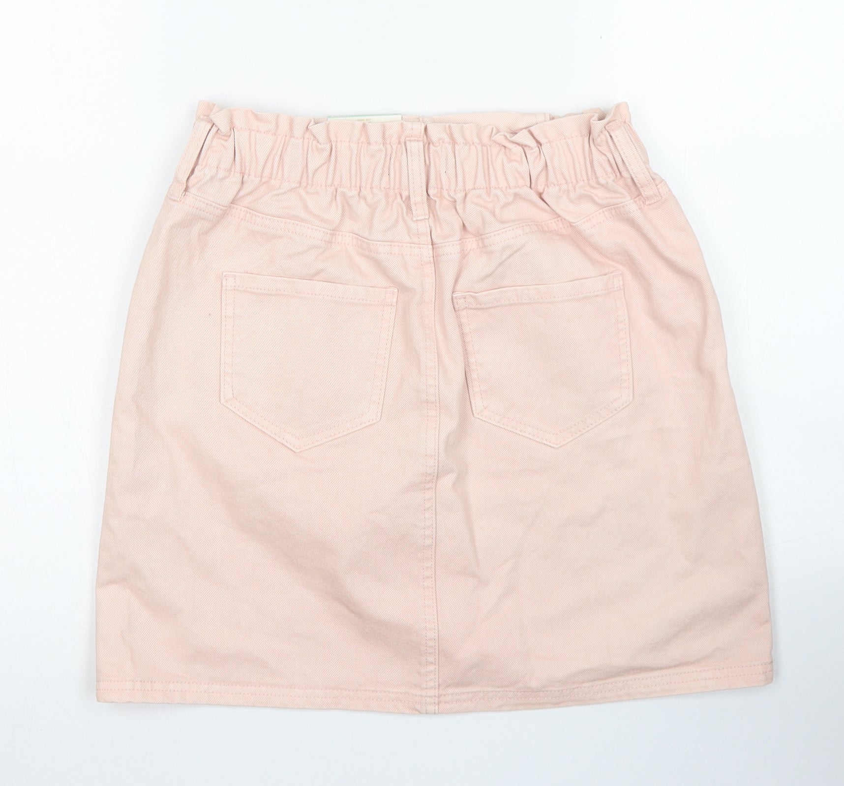 F&F Womens Pink Cotton A-Line Skirt Size 8 Button - Paper Bag Waist