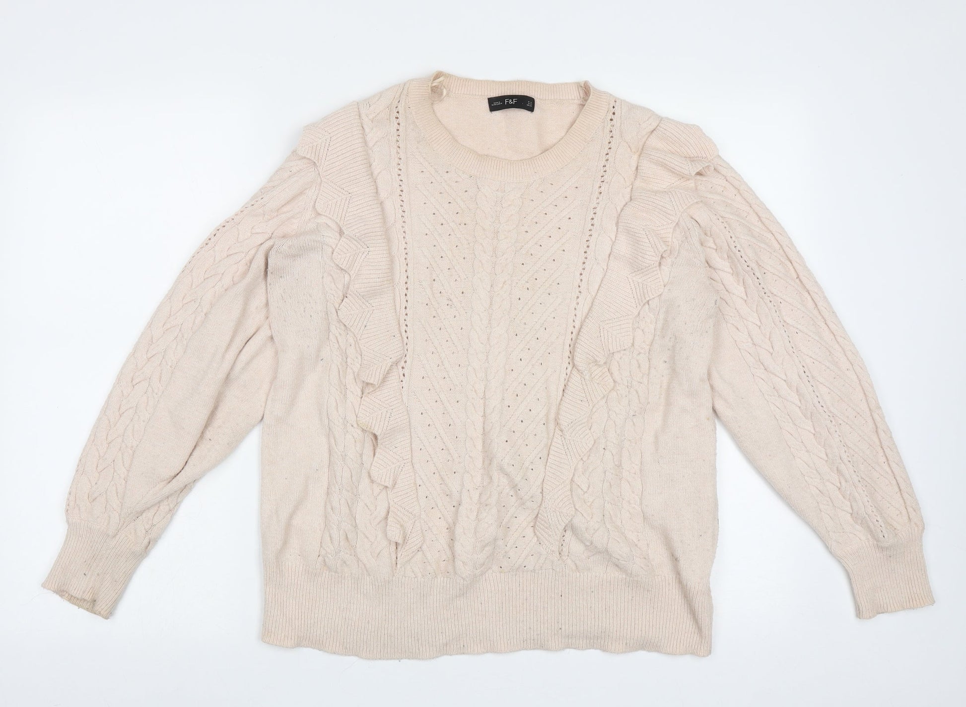 F&F Womens Pink Crew Neck Geometric Viscose Pullover Jumper Size 16