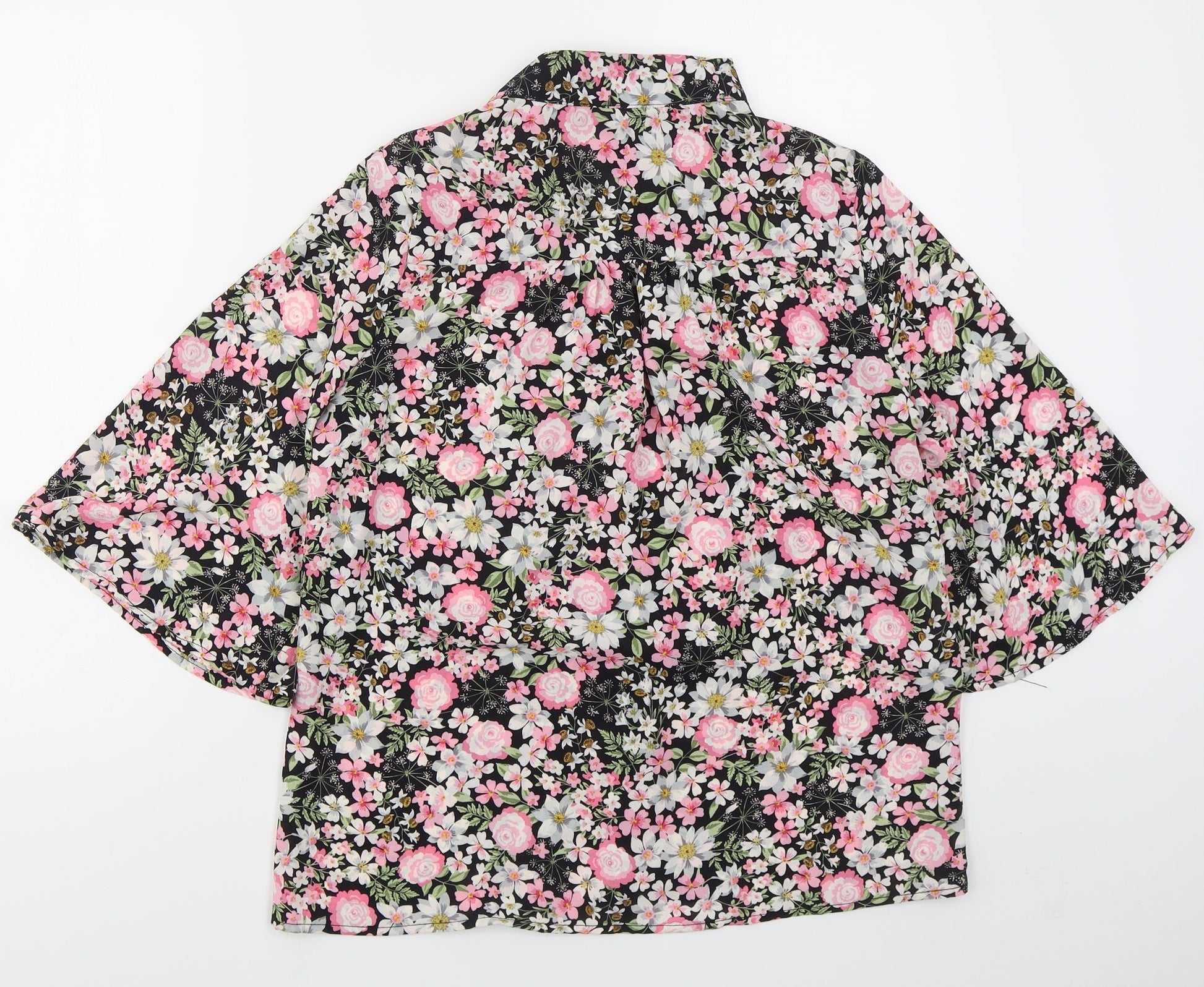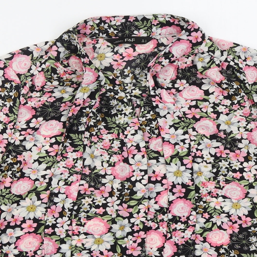 F&F Womens Pink Floral Polyester Basic Button-Up Size 8 Collared