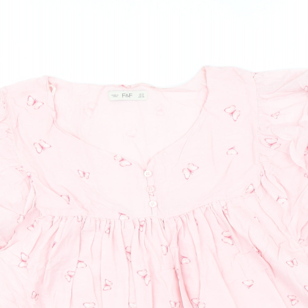 F&F Womens Pink Geometric Cotton Basic Blouse Size 20 V-Neck - Butterfly Print