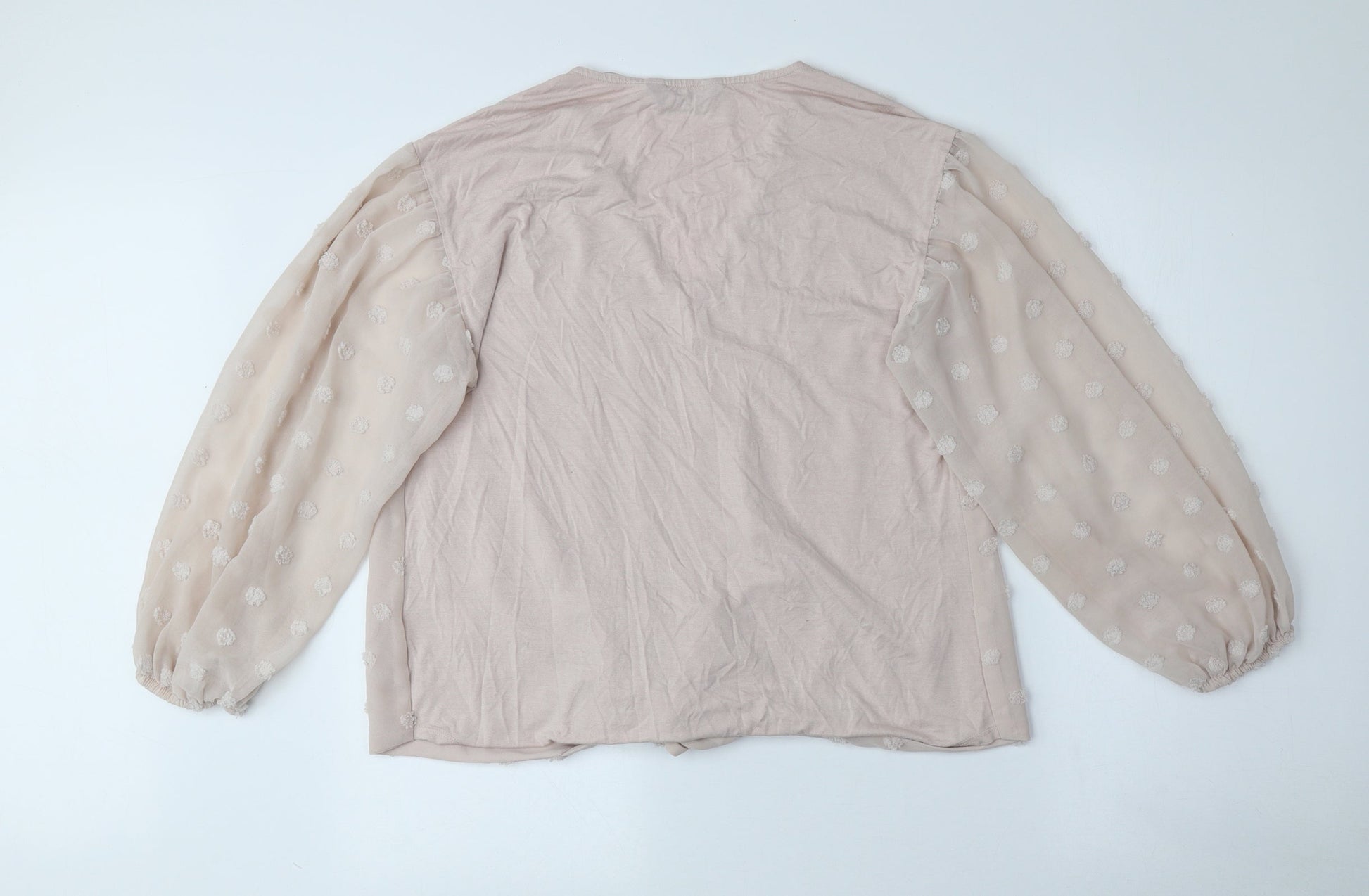 F&F Womens Pink Polka Dot Polyester Basic Blouse Size 10 V-Neck - See Through Sleeves