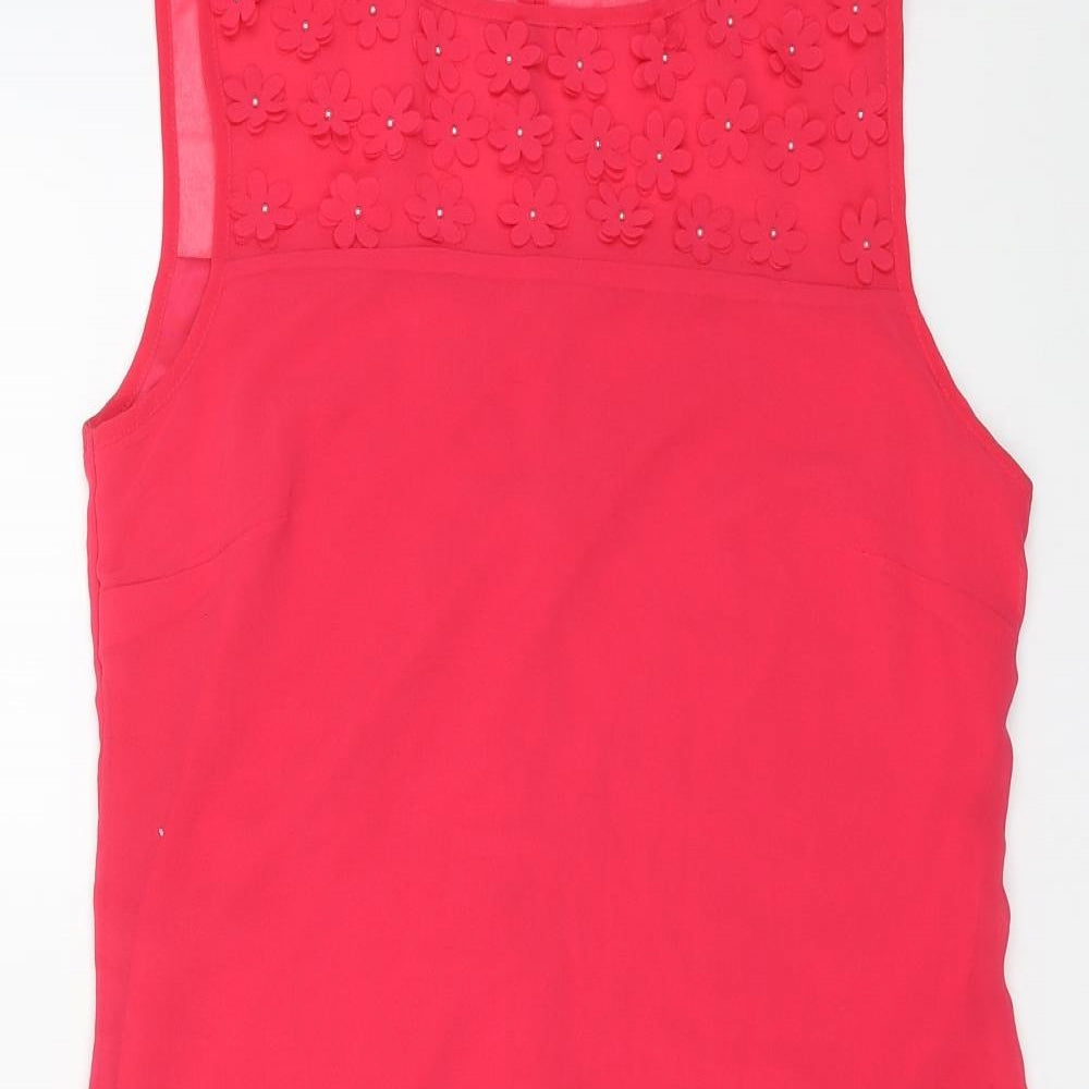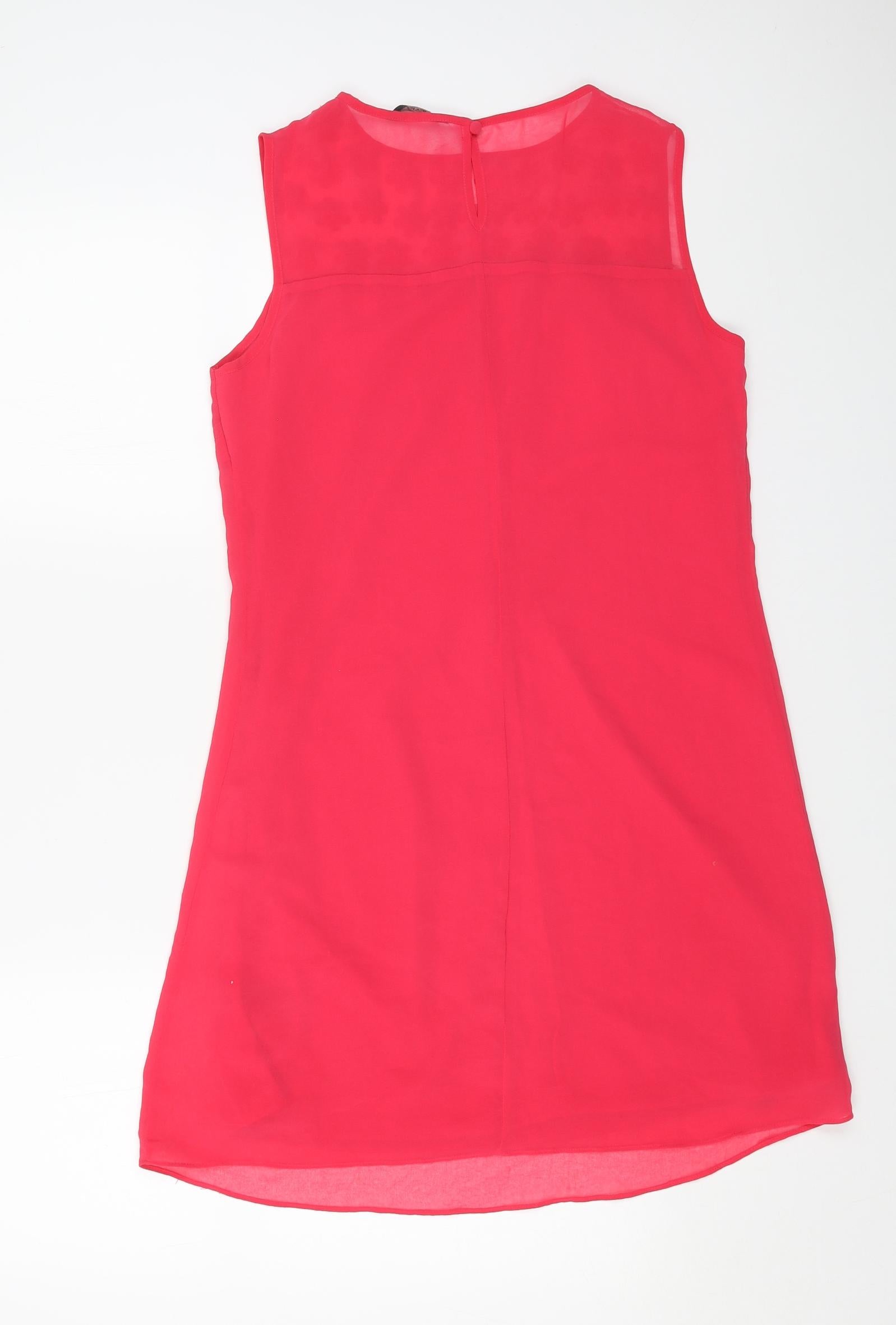 F&F Womens Pink Polyester Shift Size 8 Boat Neck Button - Flower Motif