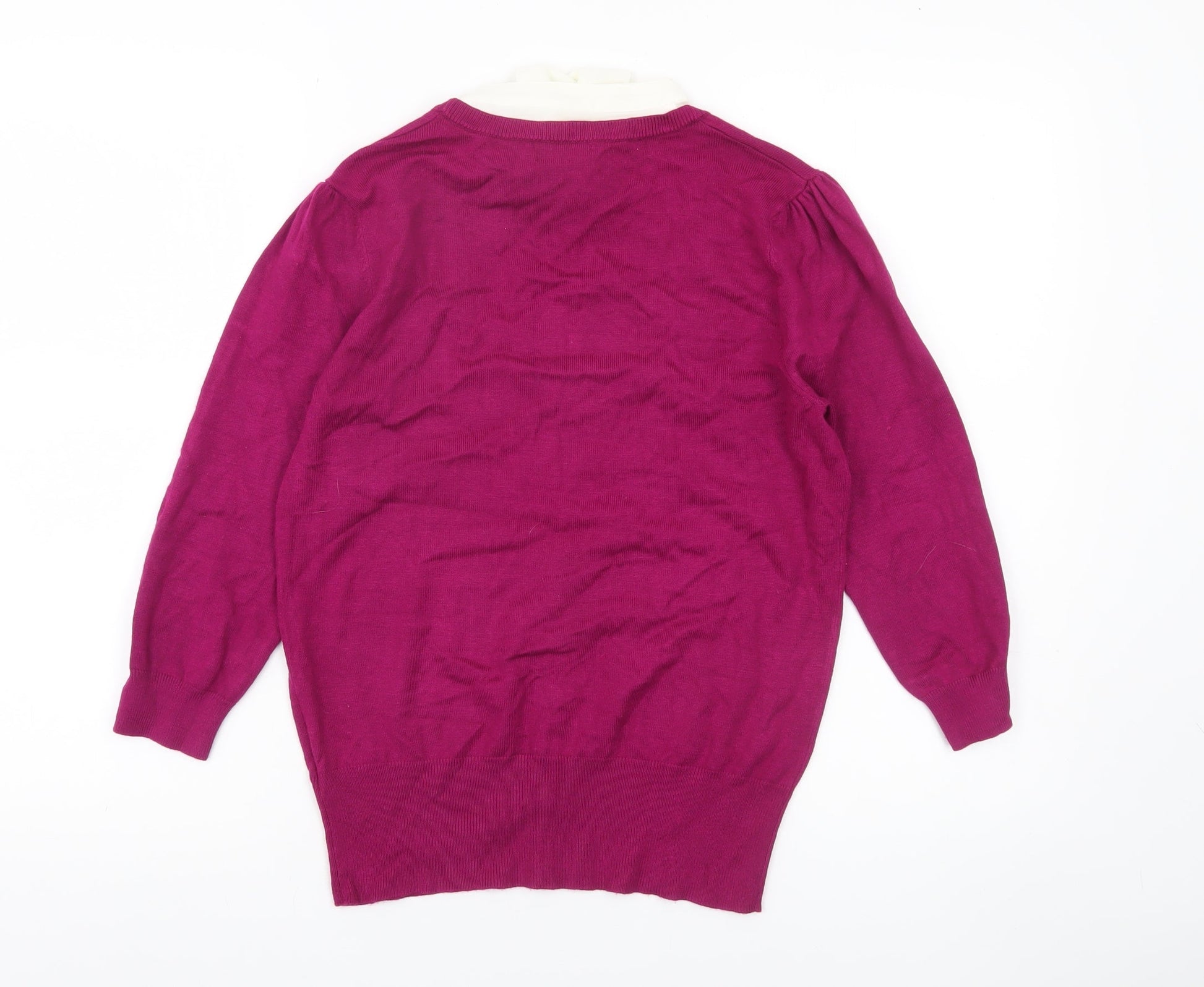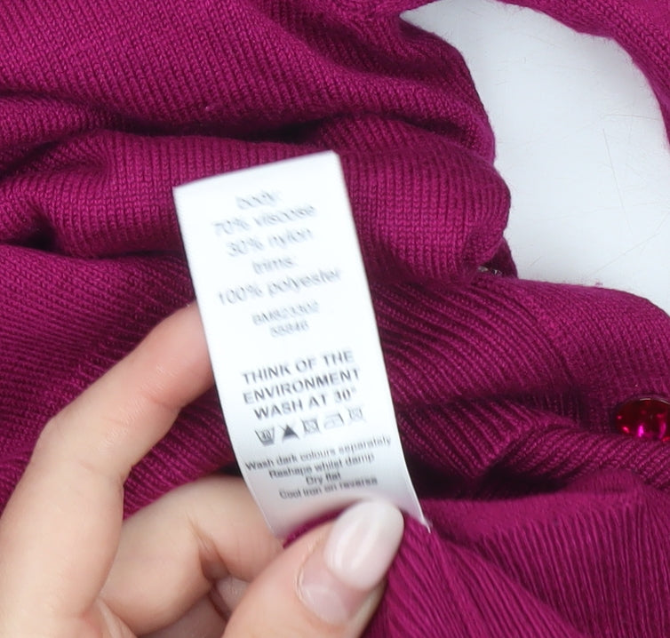 F&F Womens Purple 3/4 Sleeve Cardigan Size 12 Scoop Neck Bow Detail