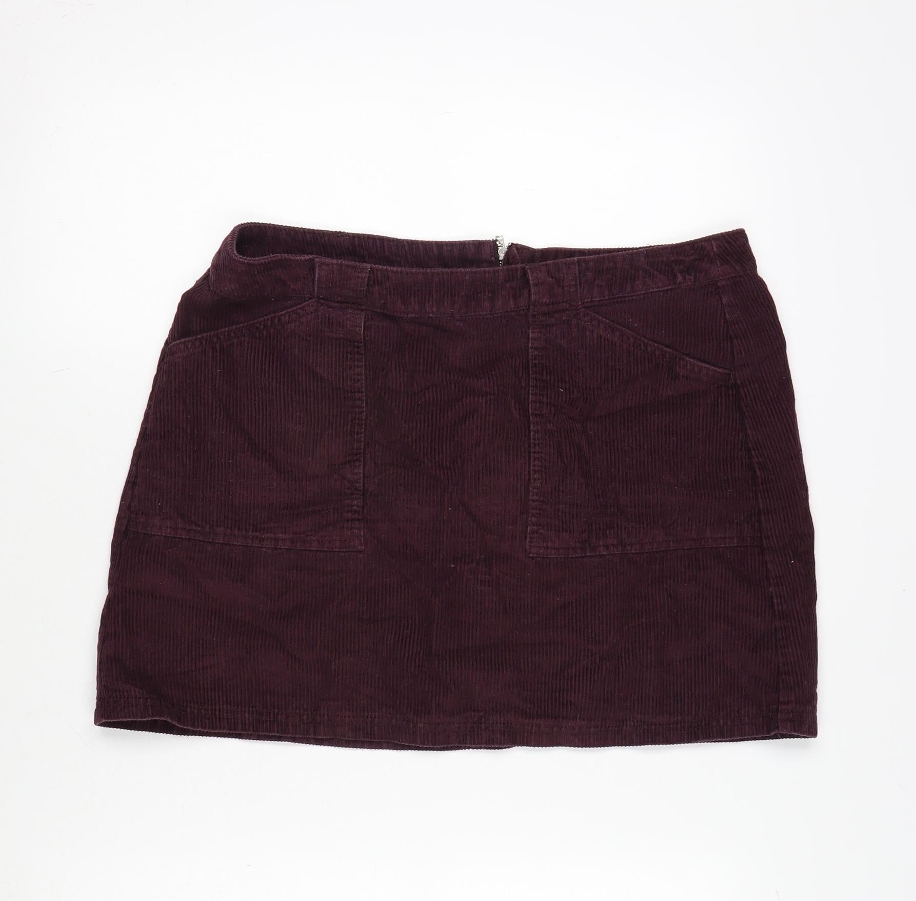 F&F Womens Purple Cotton A-Line Skirt Size 14 Zip