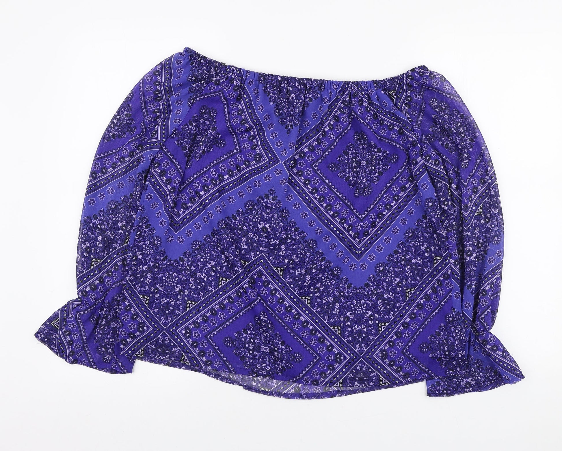 F&F Womens Purple Geometric Polyester Basic Blouse Size 12 Off the Shoulder