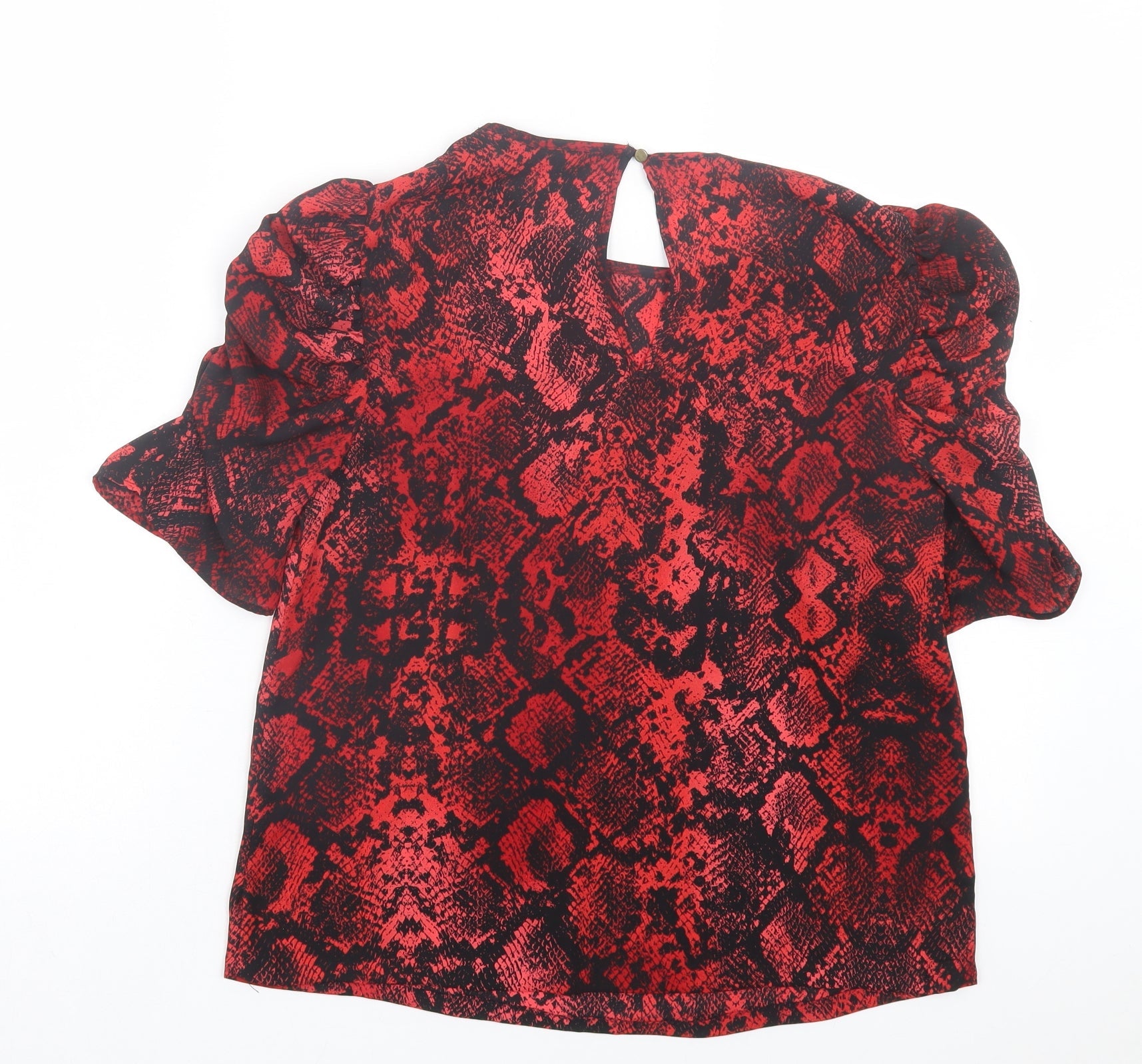 F&F Womens Red Animal Print Polyester Basic Blouse Size 8 Crew Neck - Snake Print