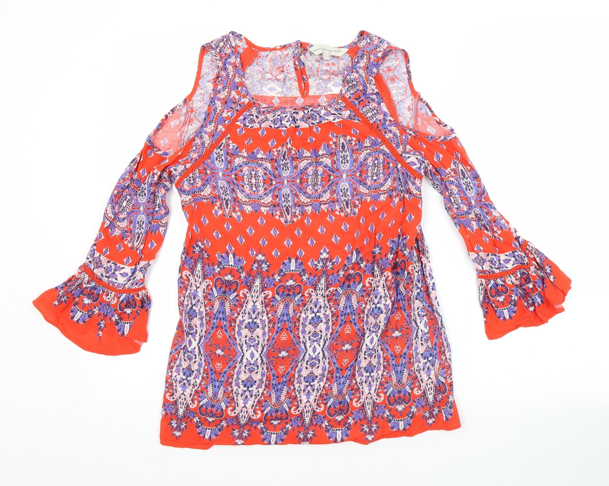 F&F Womens Red Argyle/Diamond Basic Blouse Size 6 Scoop Neck