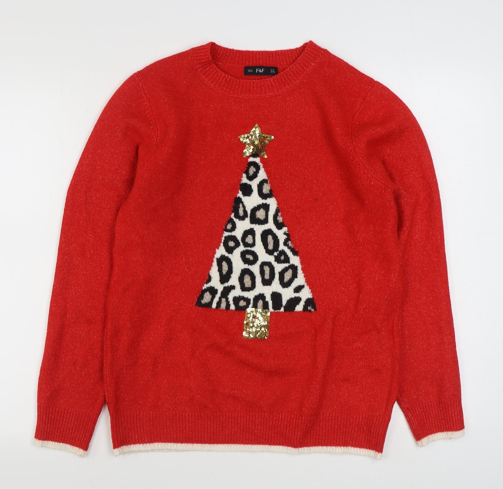 F&F Womens Red Round Neck Polyester Pullover Jumper Size 12