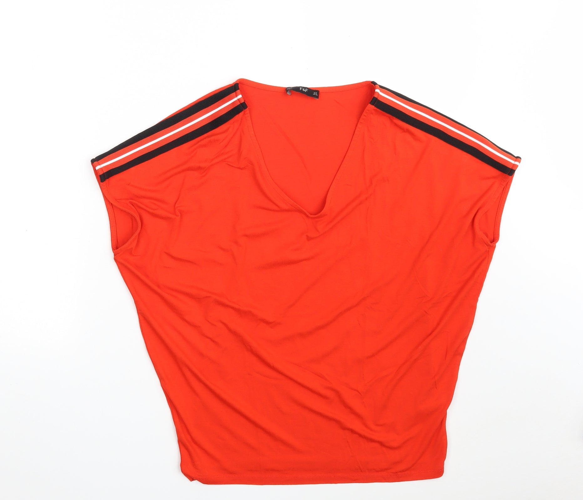 F&F Womens Red Striped Viscose Basic T-Shirt Size 8 V-Neck
