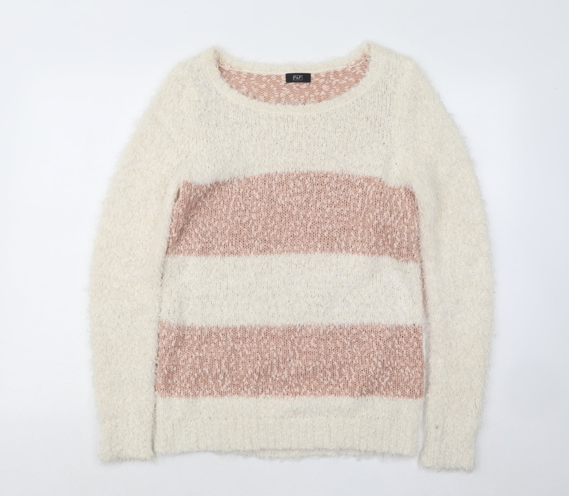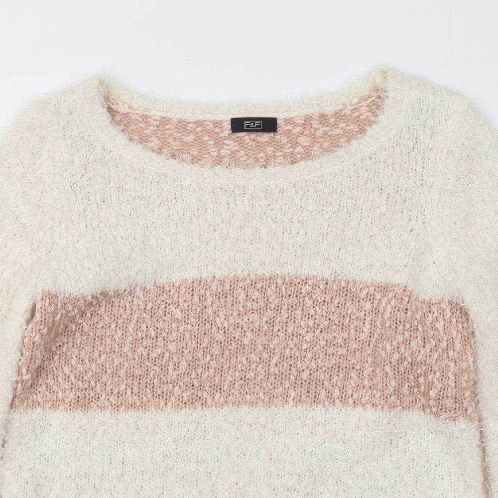 F&F Womens White Boat Neck Striped Polyester Pullover Jumper Size 8