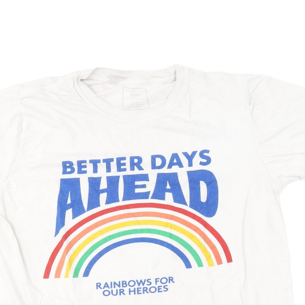 F&F Womens White Cotton Basic T-Shirt Size M Round Neck - Heroes