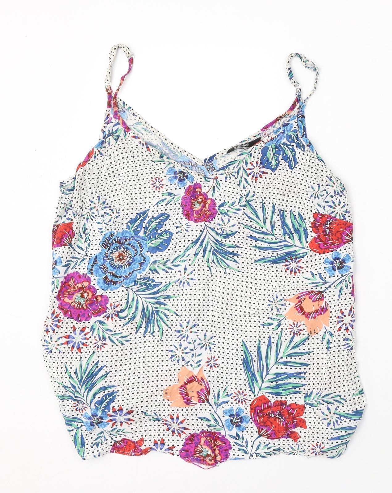 F&F Womens White Floral Viscose Basic Blouse Size 14 V-Neck
