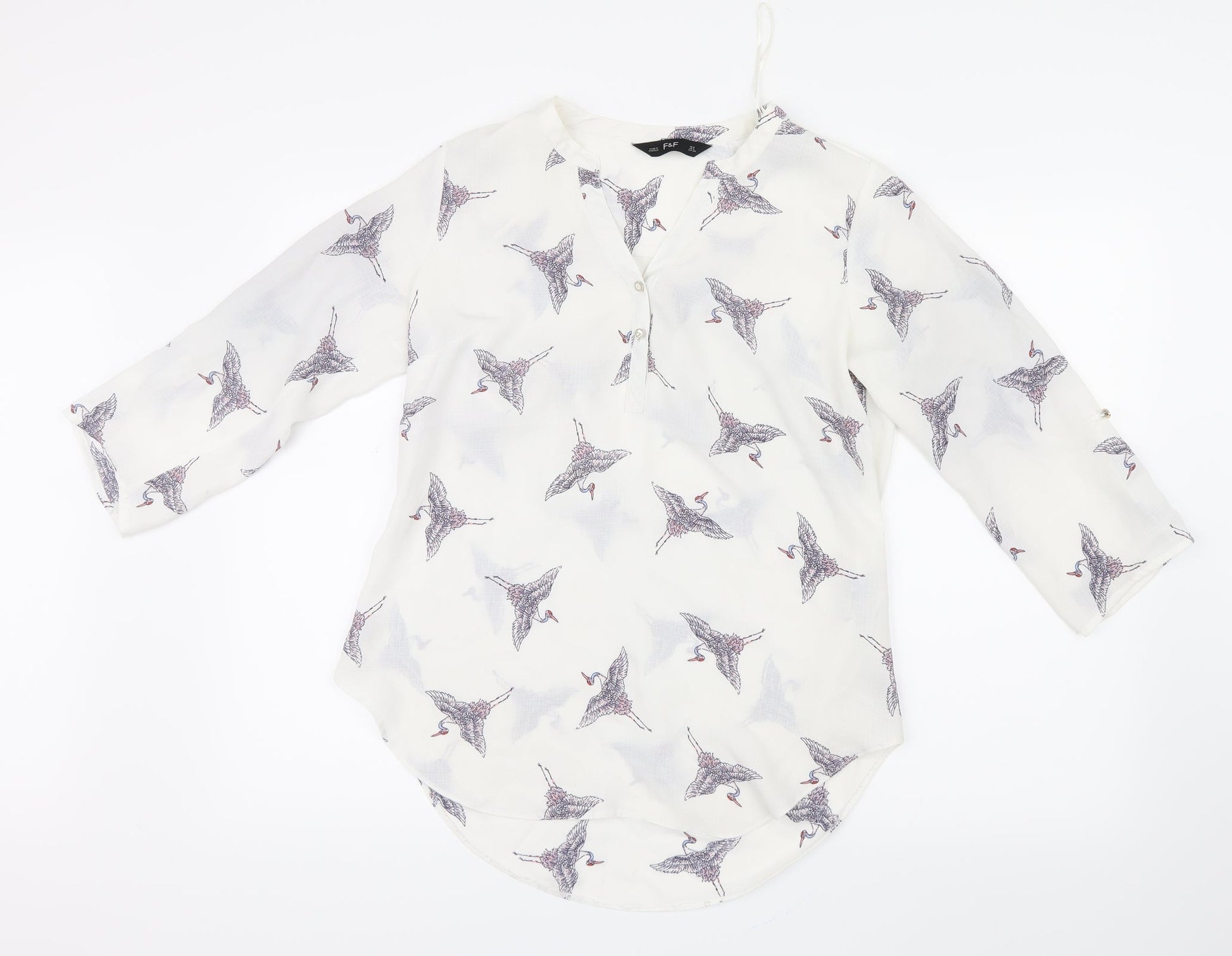 F&F Womens White Geometric Basic Blouse Size 8