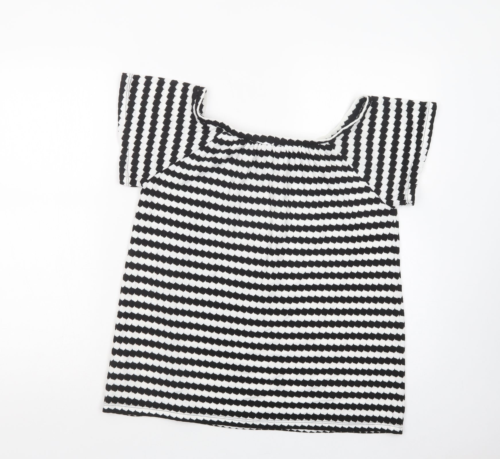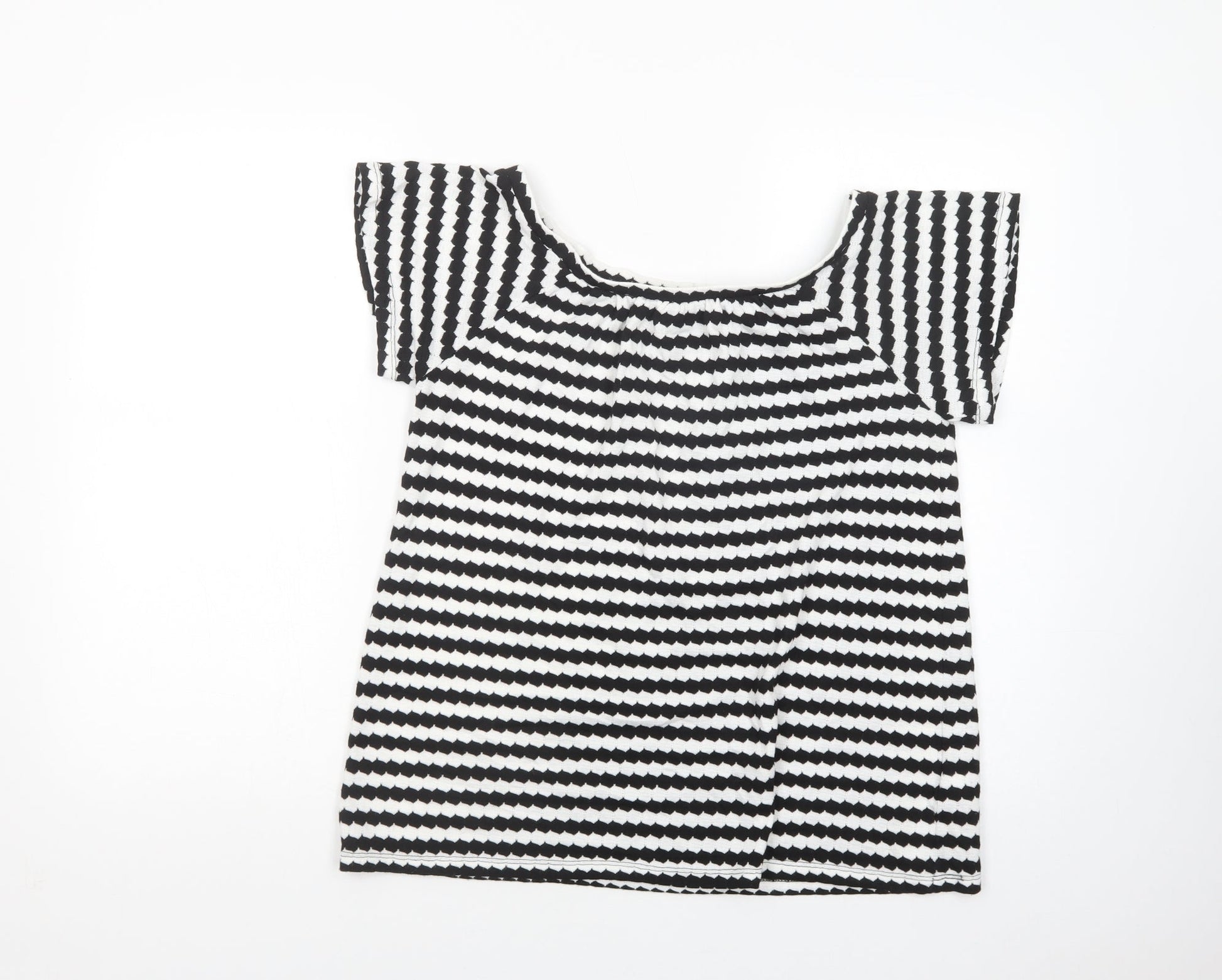 F&F Womens White Geometric Polyester Basic Blouse Size 10 Boat Neck
