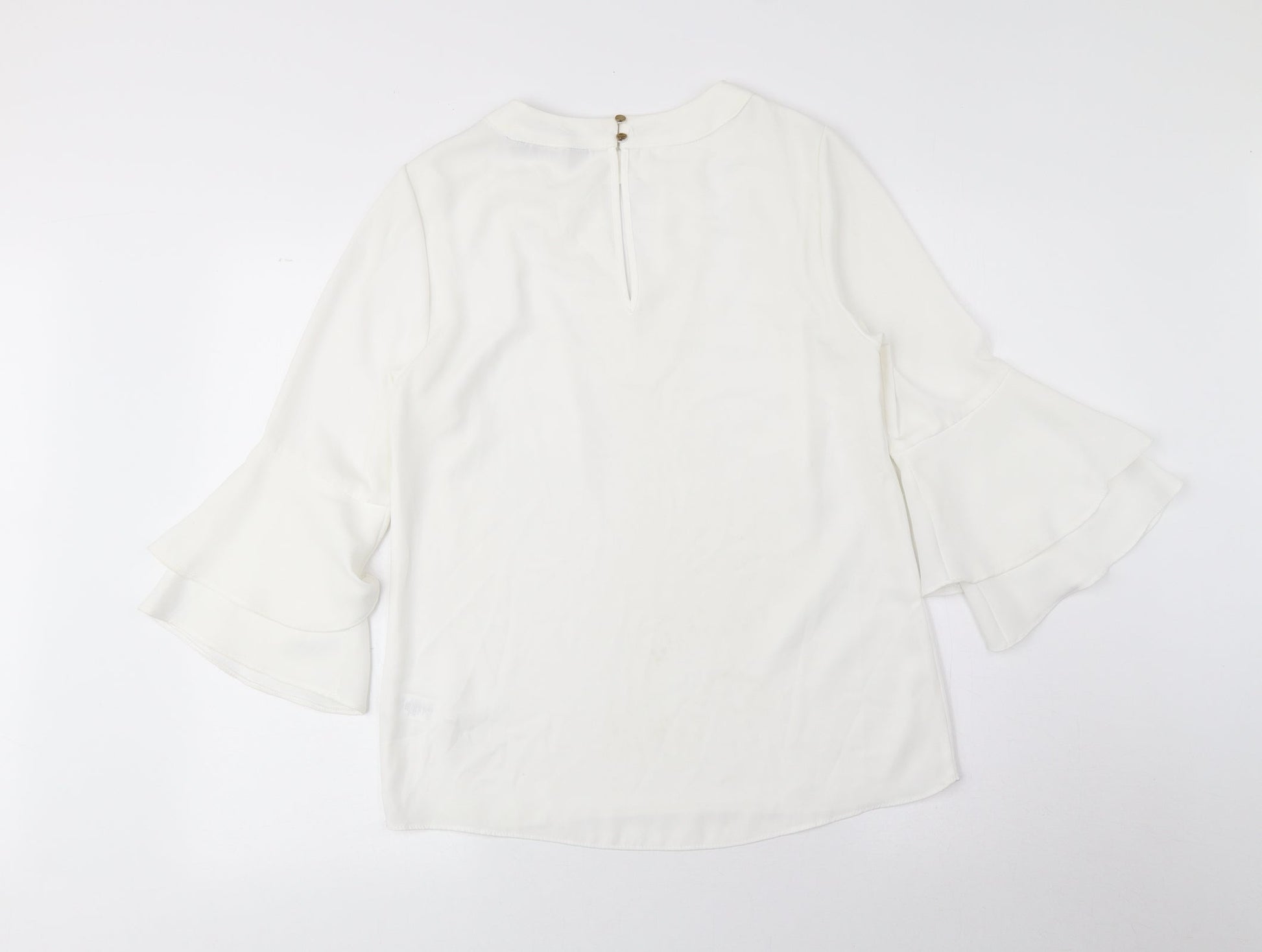 F&F Womens White Polyester Basic Blouse Size 8 Boat Neck - Flared Sleeves