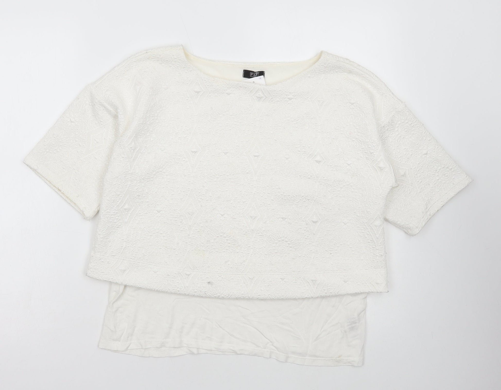 F&F Womens White Polyester Basic T-Shirt Size 12 Round Neck