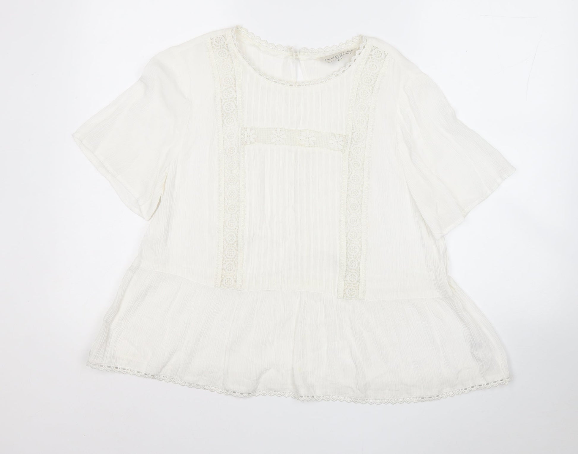 F&F Womens White Round Neck Geometric Viscose Pullover Jumper Size 12