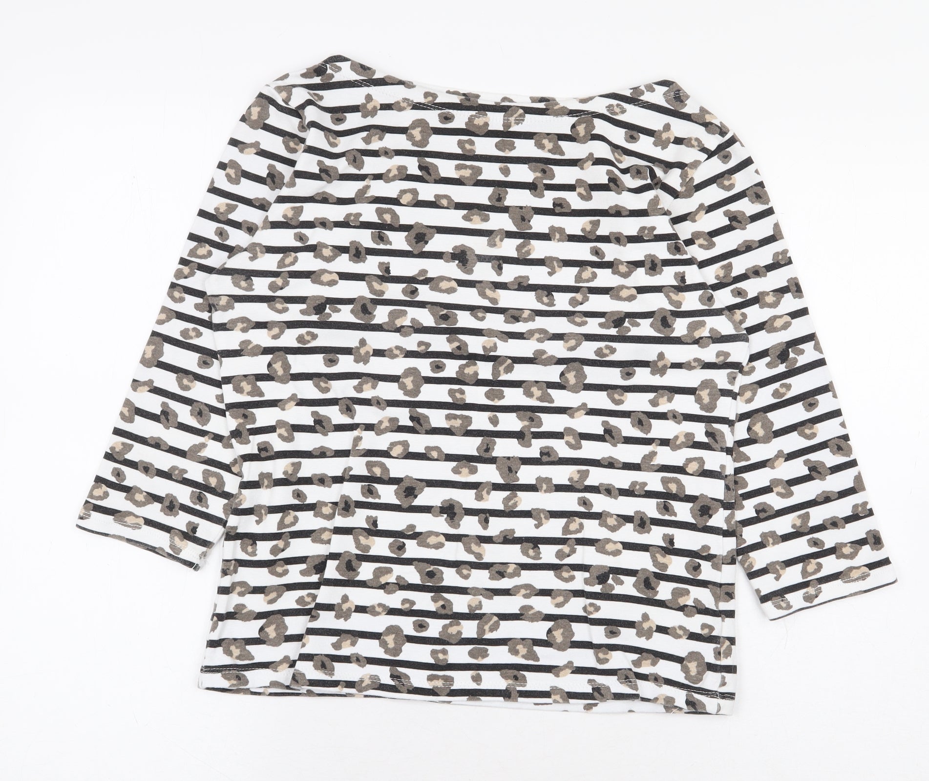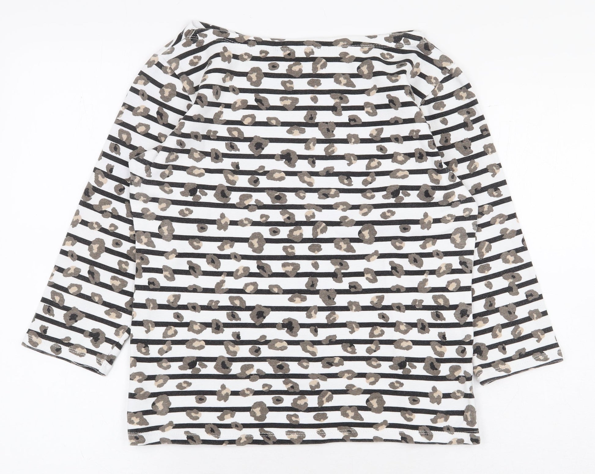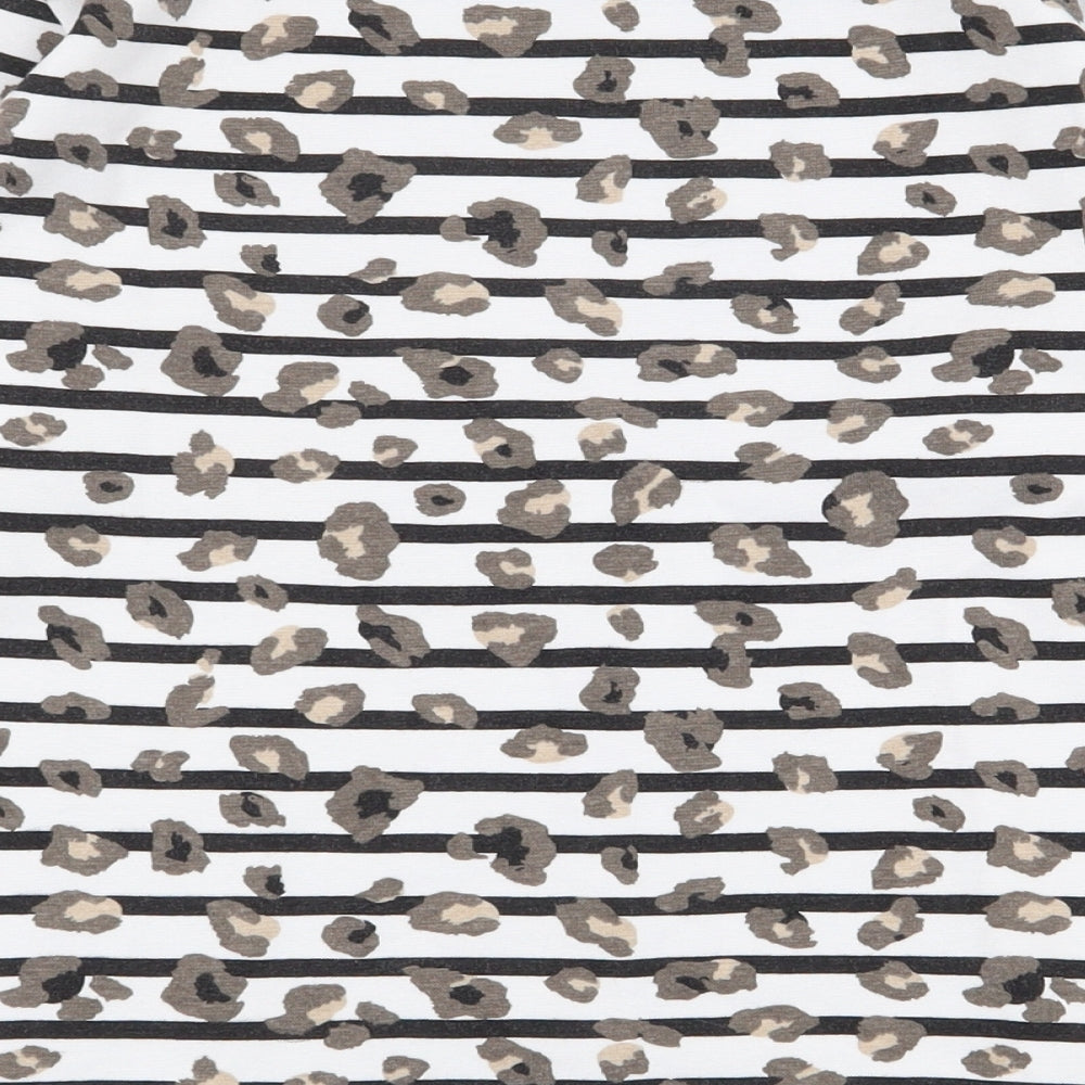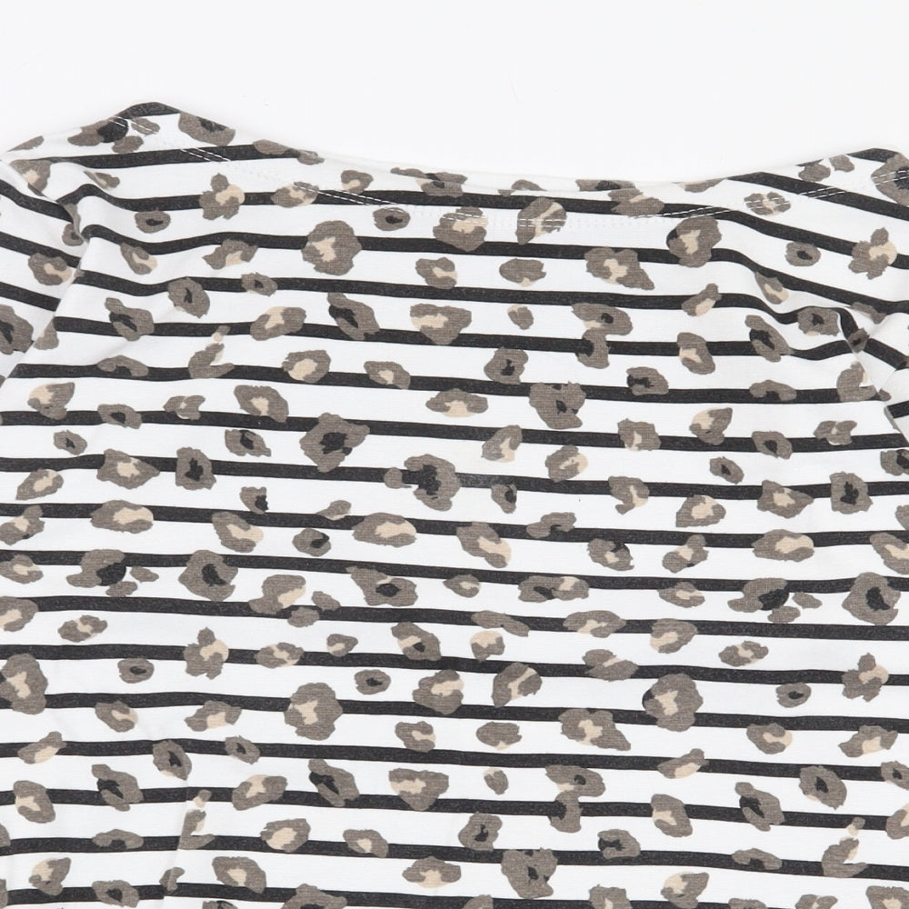 F&F Womens White Striped Cotton Basic T-Shirt Size 10 Boat Neck