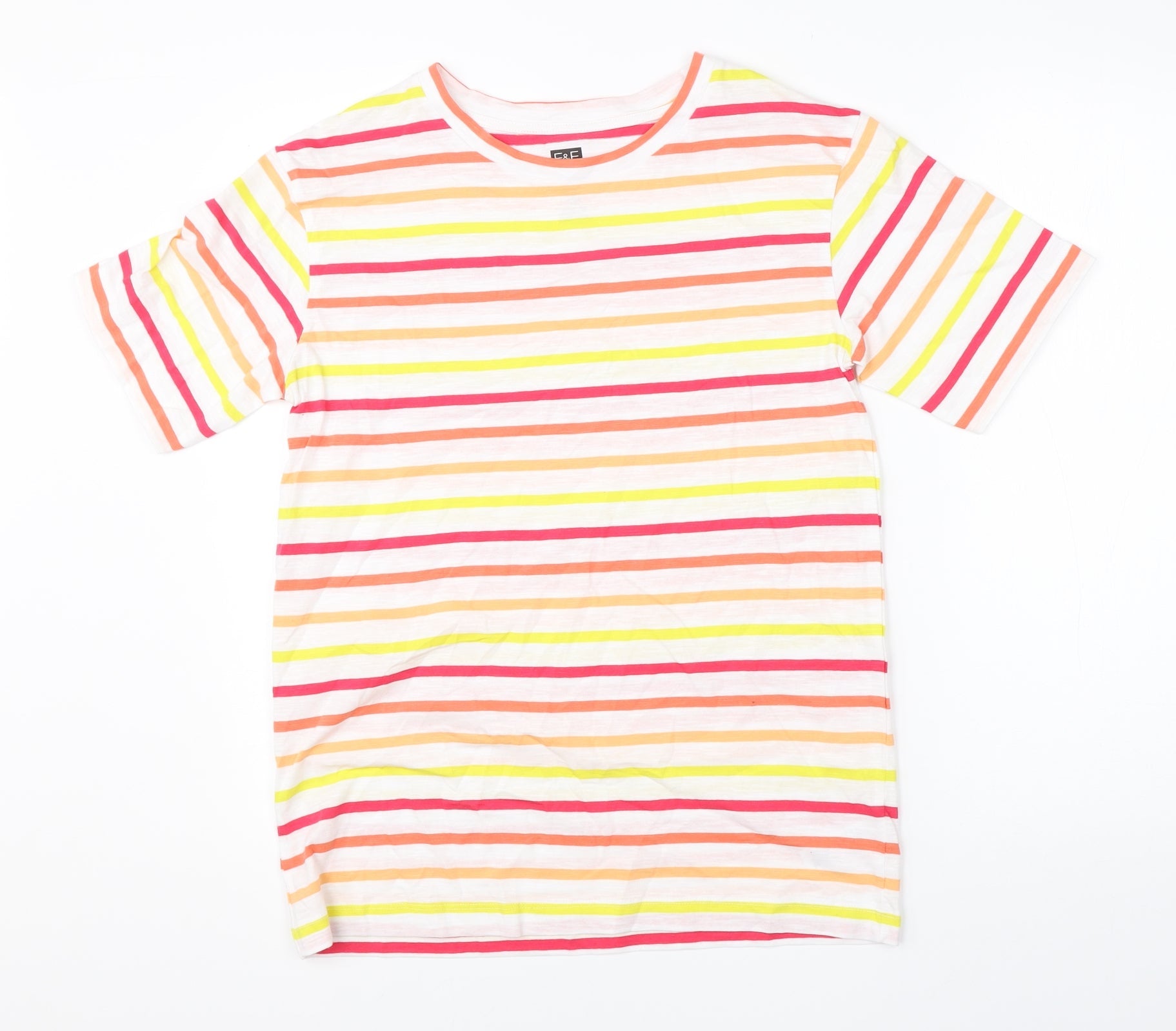 F&F Womens White Striped Cotton Basic T-Shirt Size 6 Round Neck