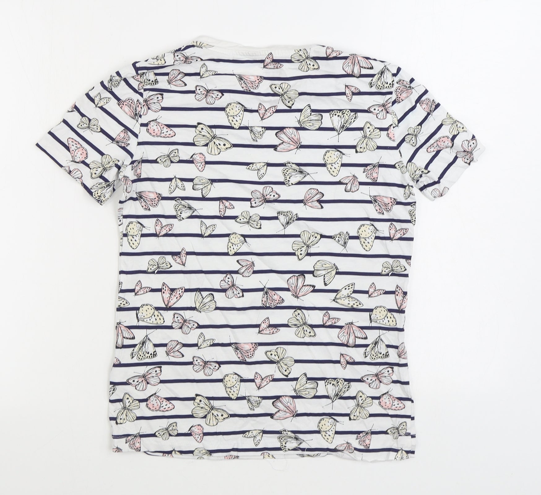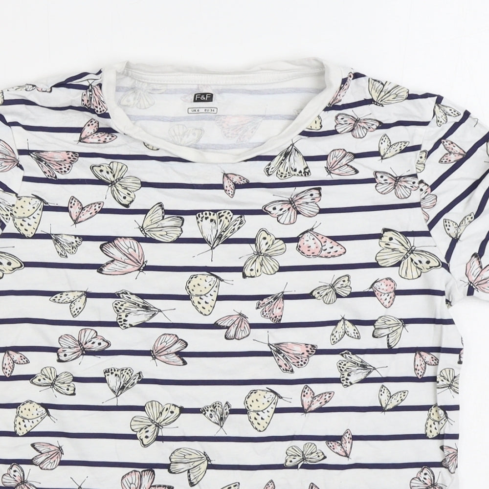 F&F Womens White Striped Cotton Basic T-Shirt Size 6 Round Neck