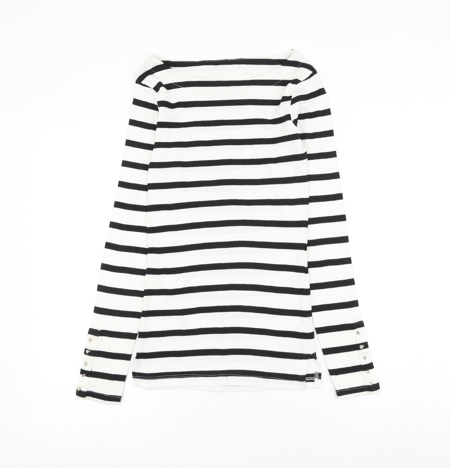 F&F Womens White Striped Cotton Basic T-Shirt Size 8 Round Neck