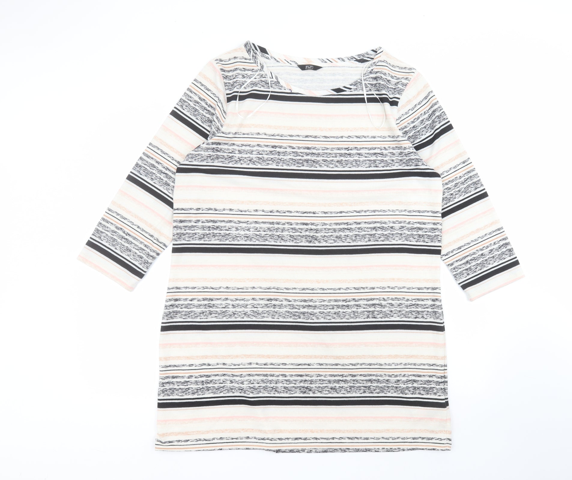 F&F Womens White Striped Polyester Basic T-Shirt Size 12 Round Neck