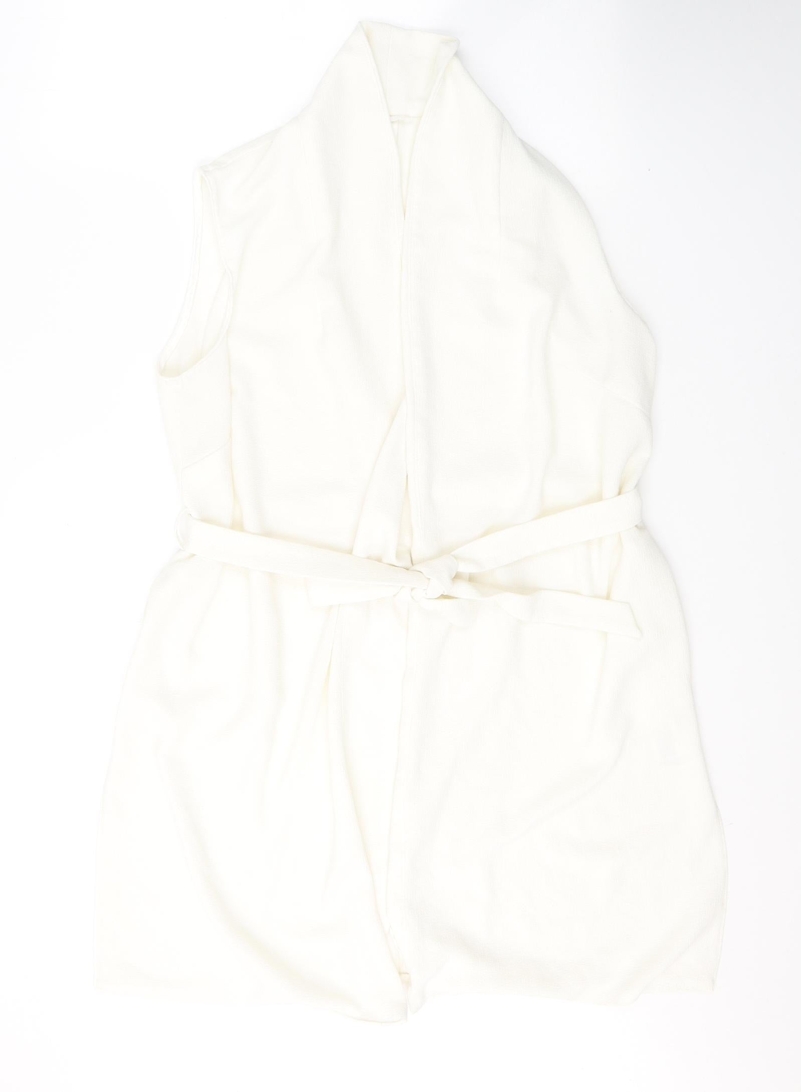 F&F Womens White V-Neck Polyester Cardigan Jumper Size 14