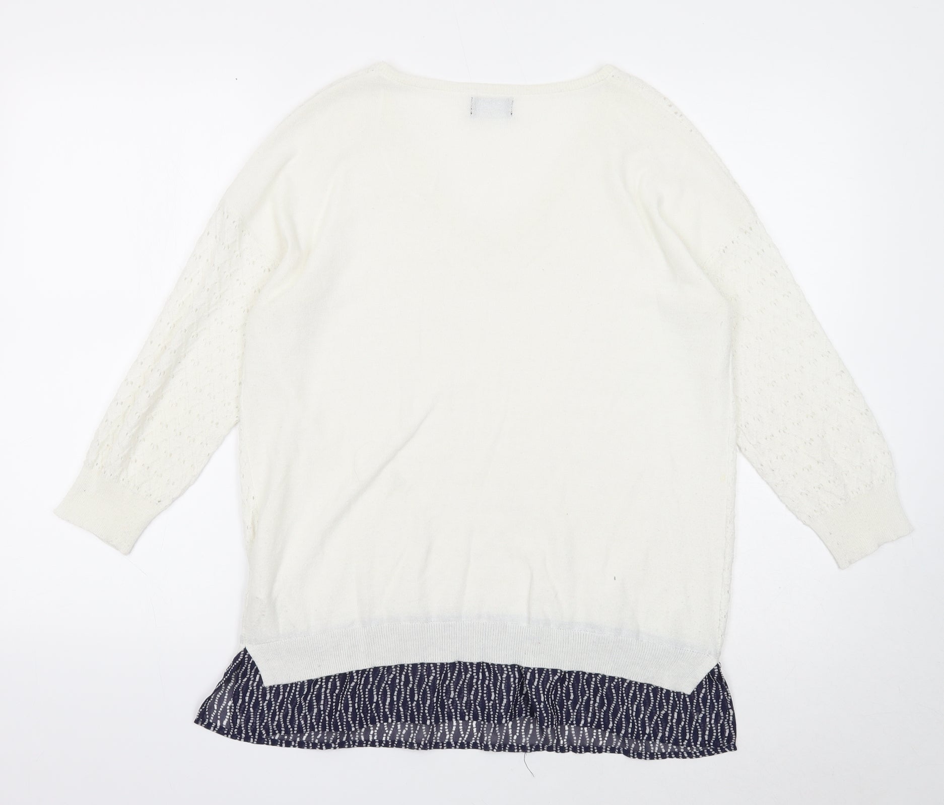 F&F Womens White V-Neck Polyester Pullover Jumper Size 14 - Chiffon Hem