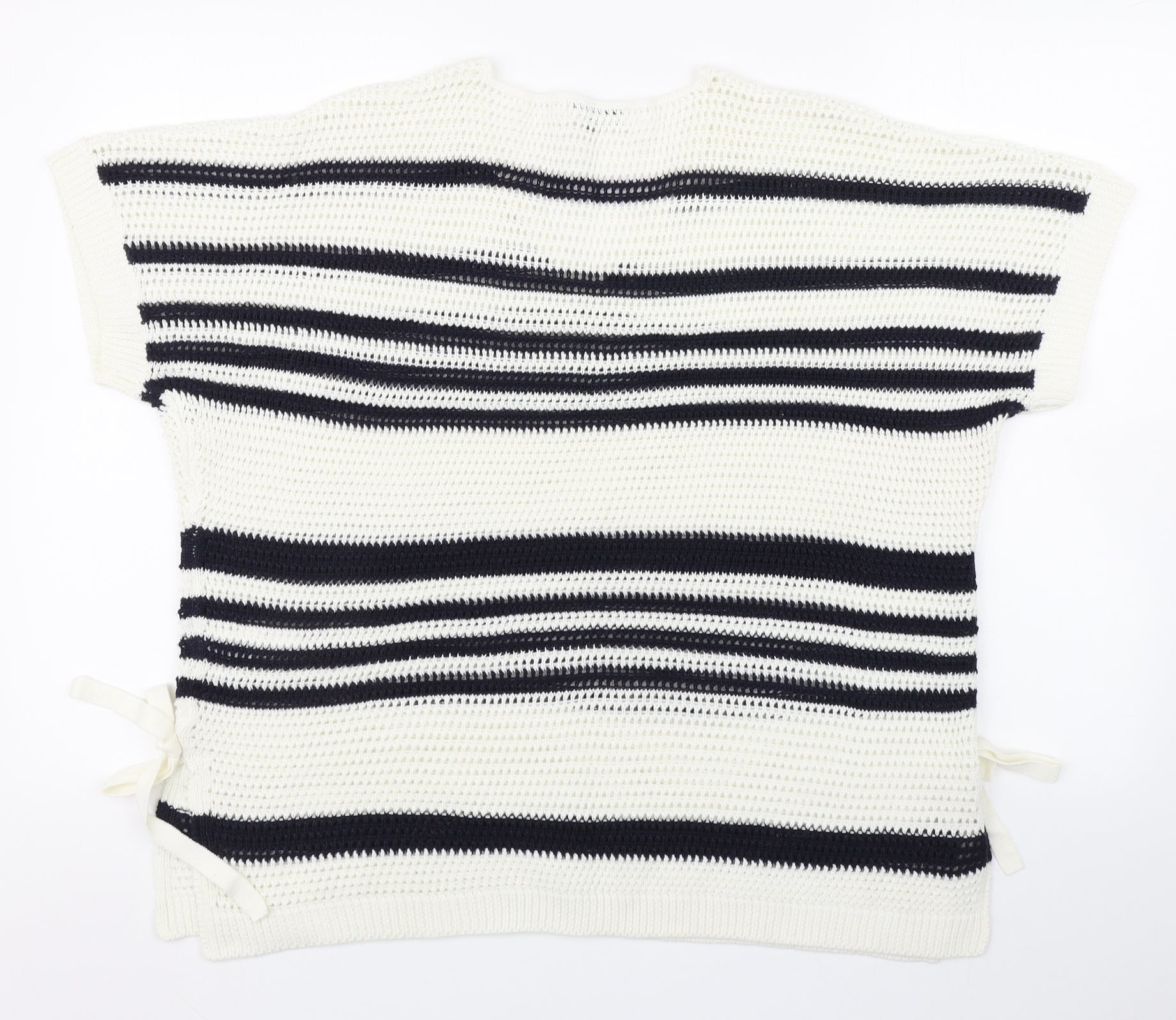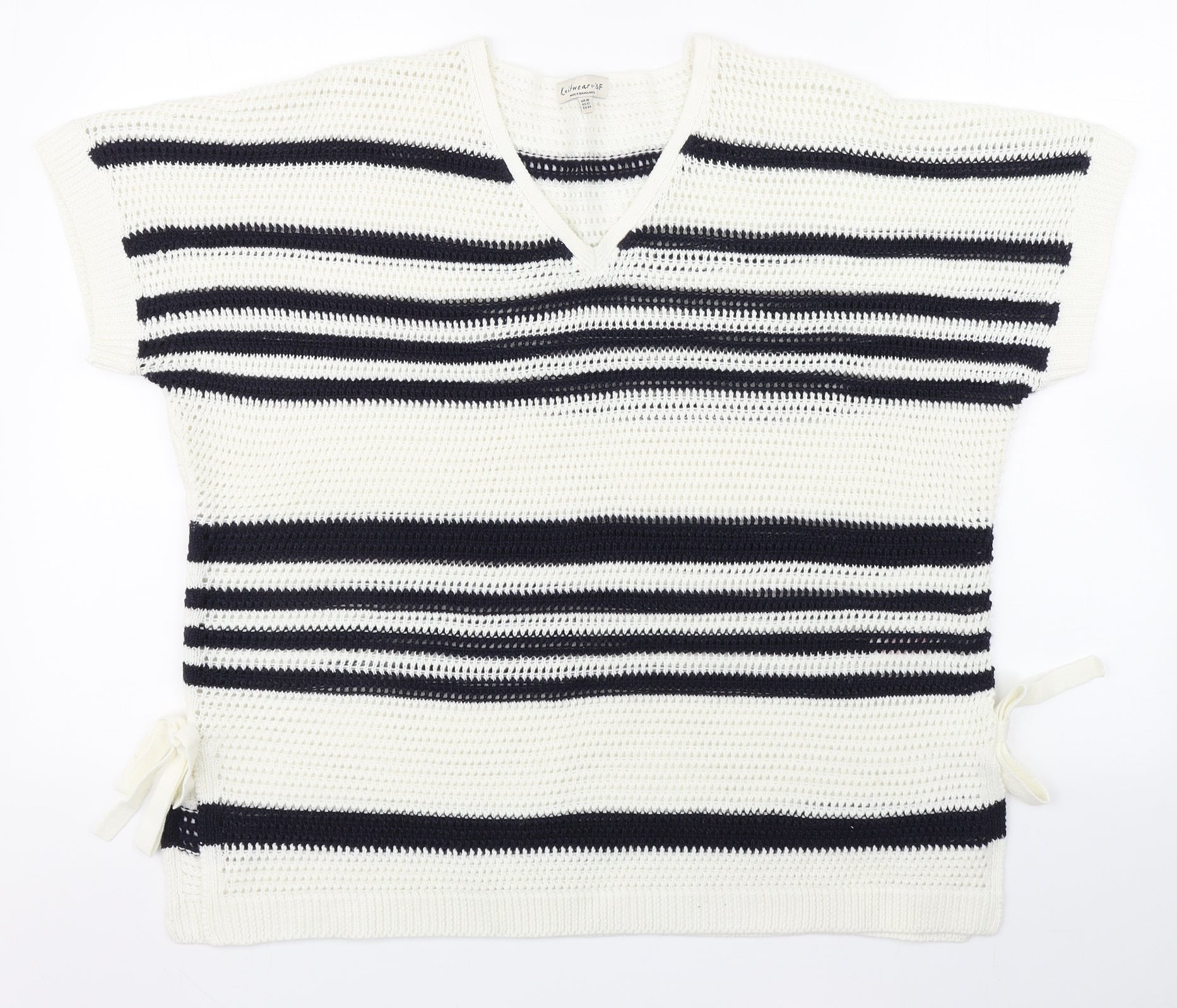 F&F Womens White V-Neck Striped Acrylic Pullover Jumper Size 16