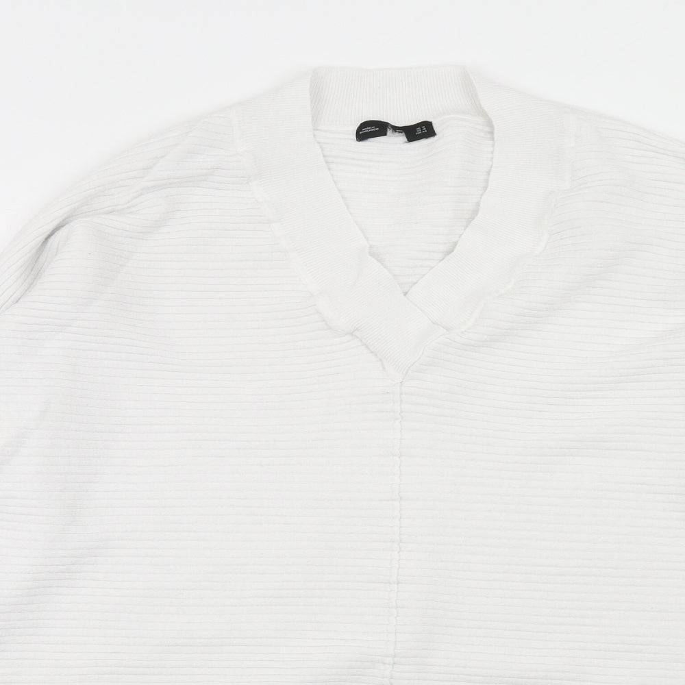 F&F Womens White V-Neck Viscose Pullover Jumper Size 16