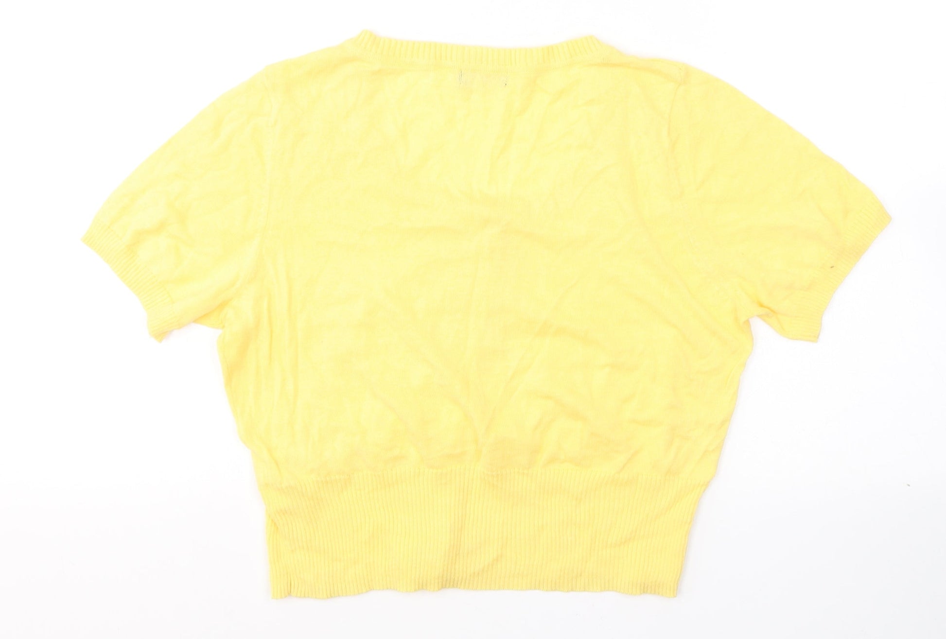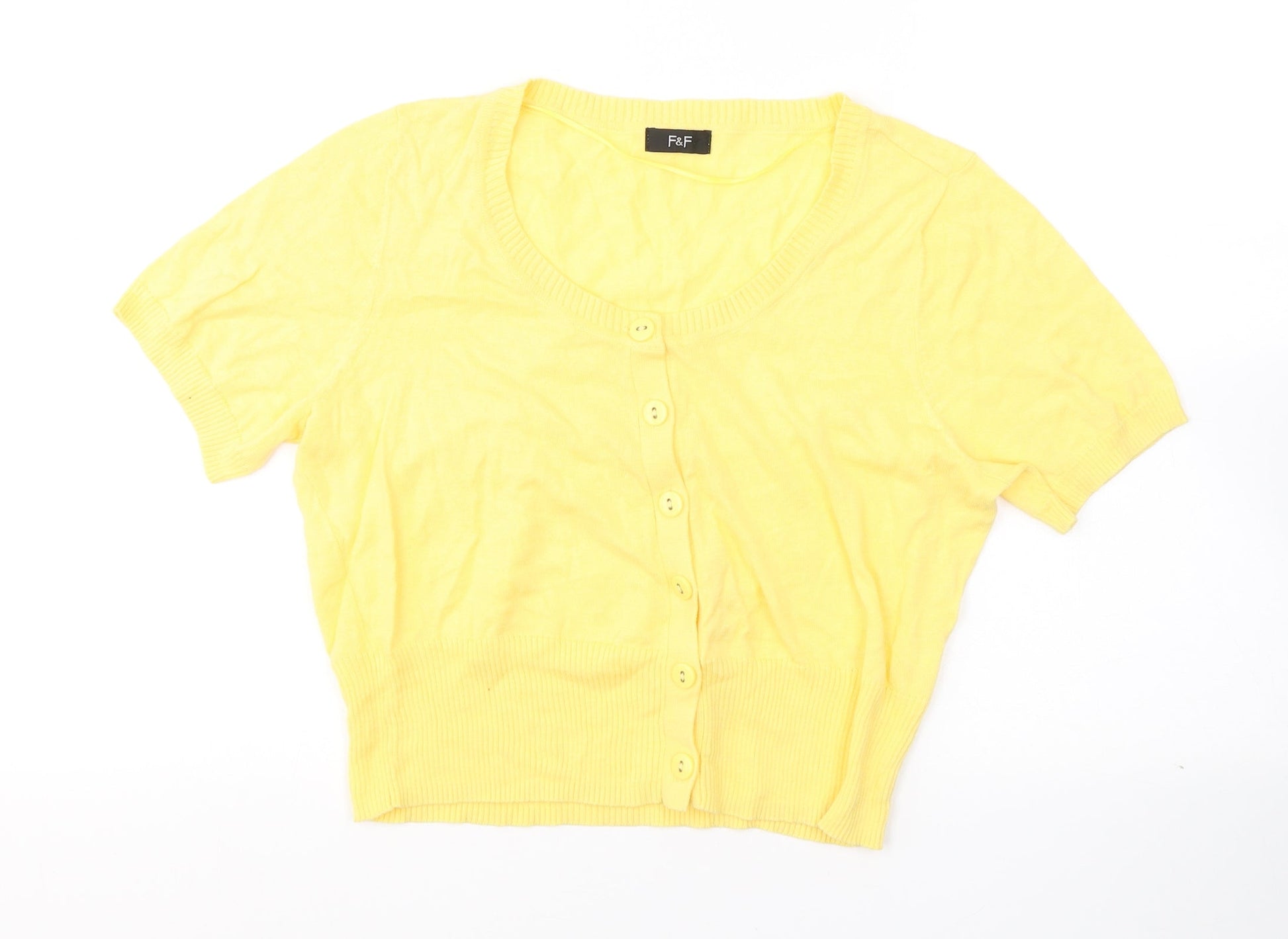 F&F Womens Yellow 100% Cotton Basic T-Shirt Size 14 V-Neck
