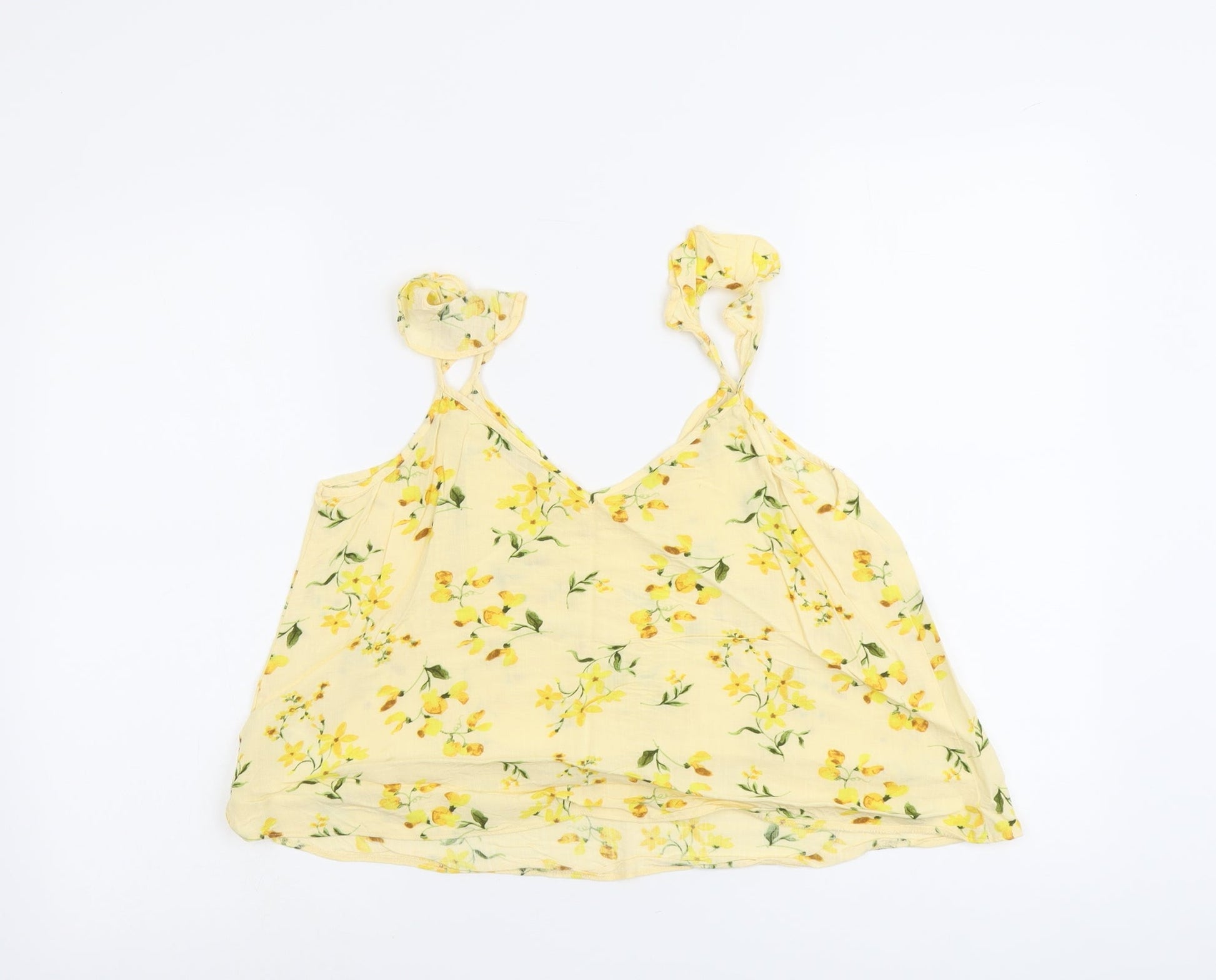F&F Womens Yellow Floral Viscose Basic Tank Size 8 V-Neck