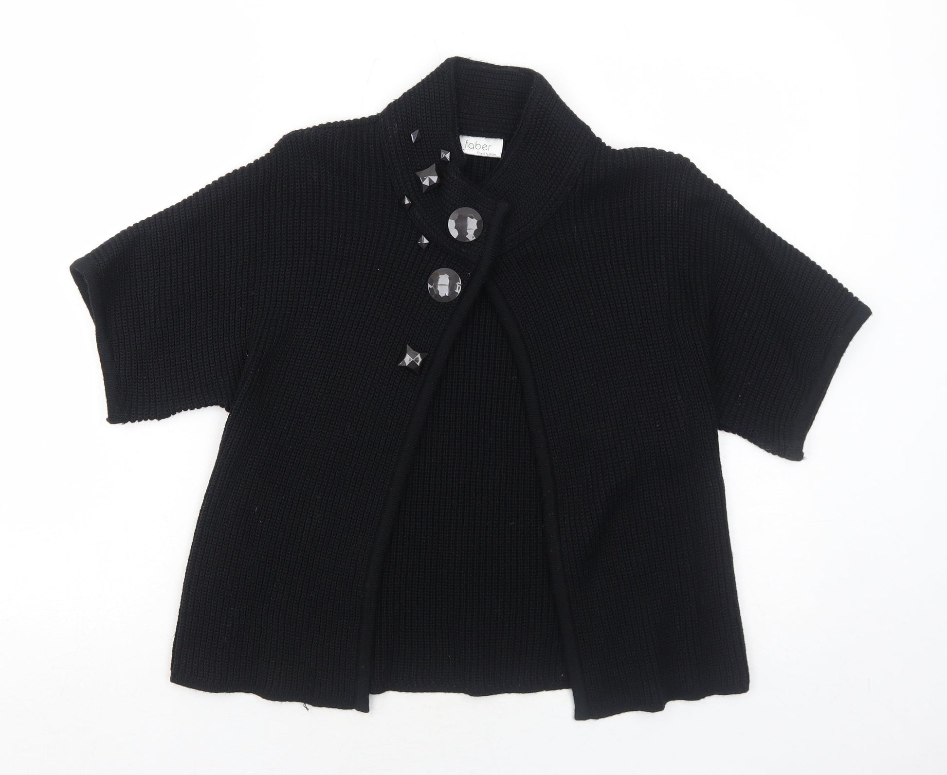 Faber Womens Black High Neck Wool Cardigan Jumper Size 10