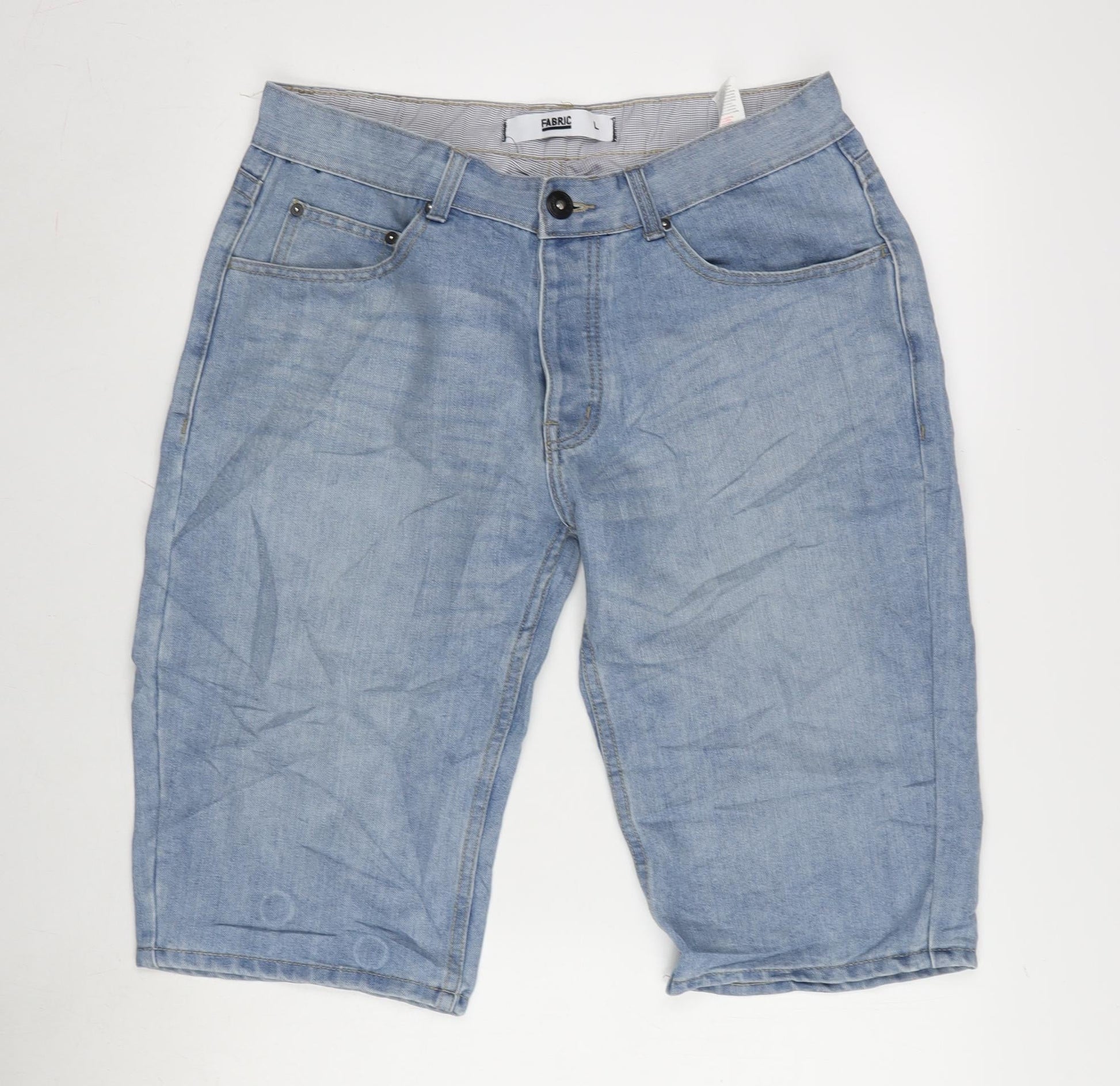 Fabric Mens Blue Cotton Bermuda Shorts Size L L14 in Extra-Slim Zip