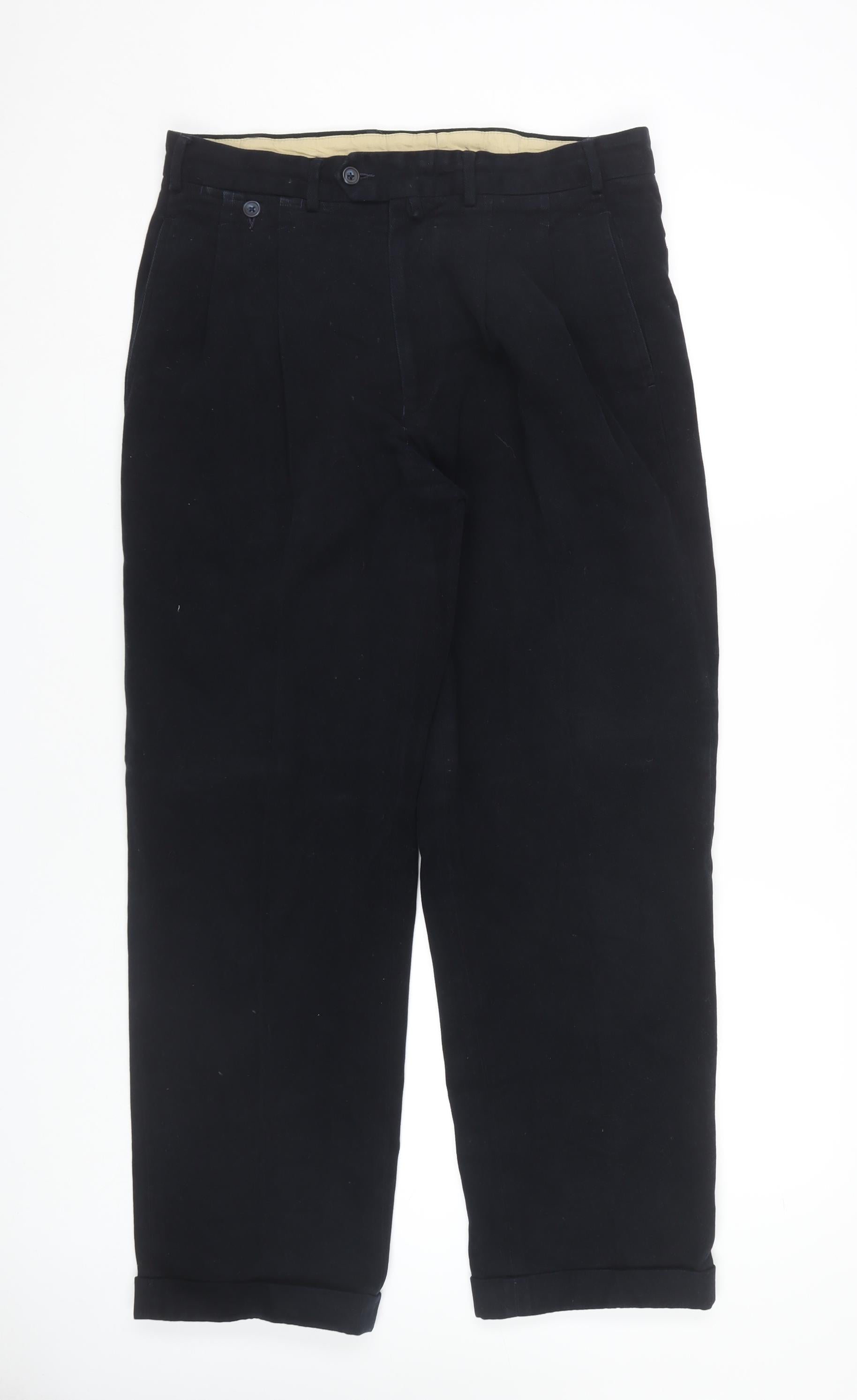Façonnable Men's Black Cotton Trousers Size 30