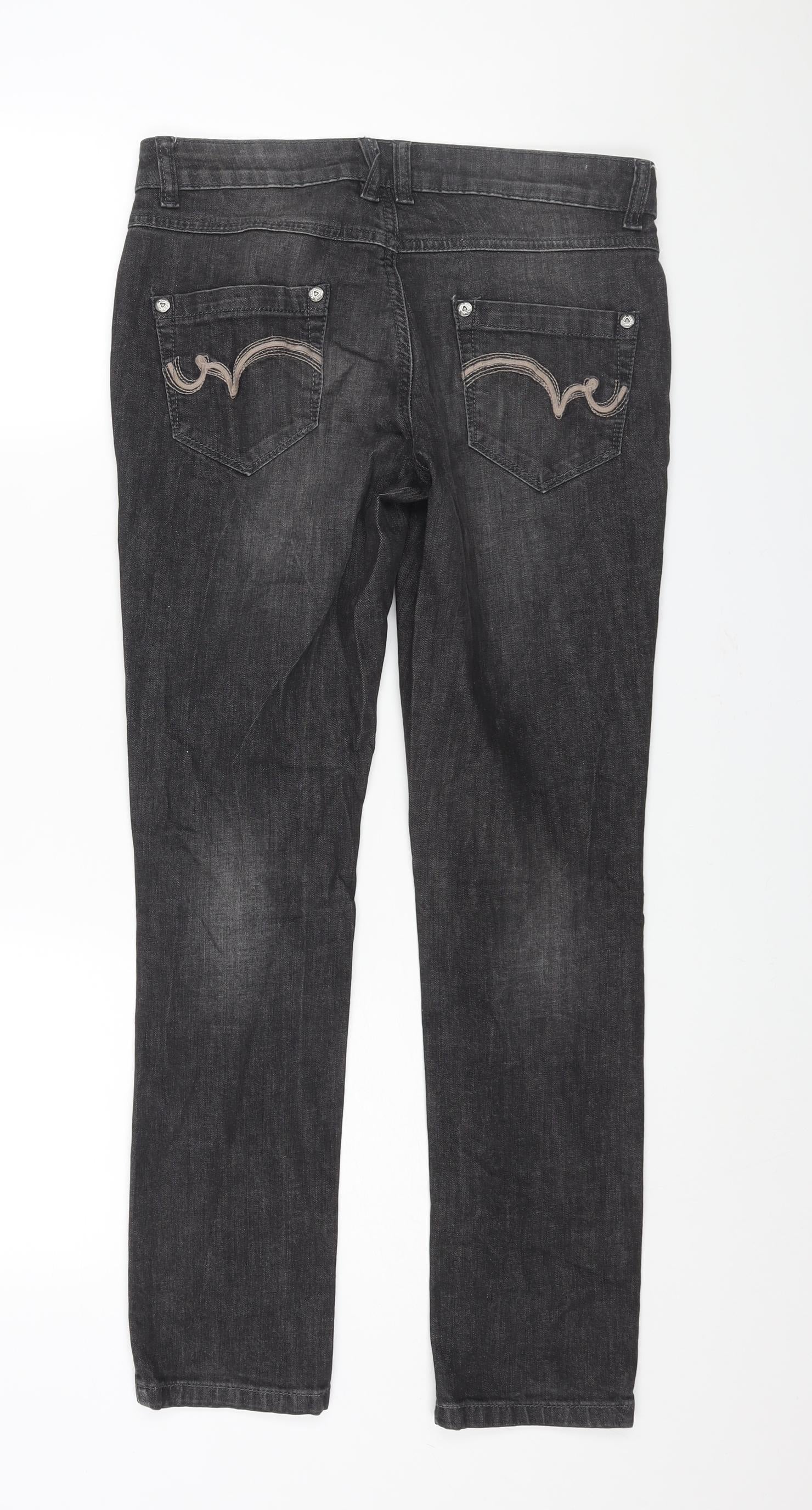 Falmer Womens Grey Cotton Straight Jeans Size 8 L29 in Regular Zip
