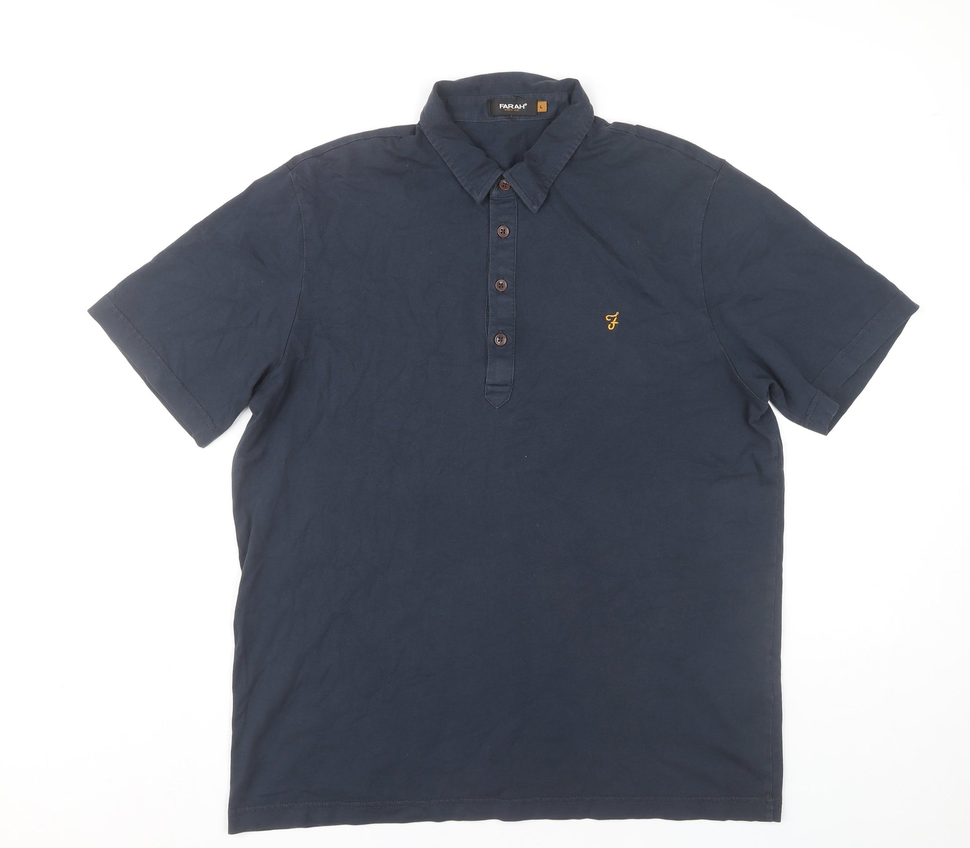 Farah Men’s Blue Cotton Short Sleeve Polo Shirt L Casual