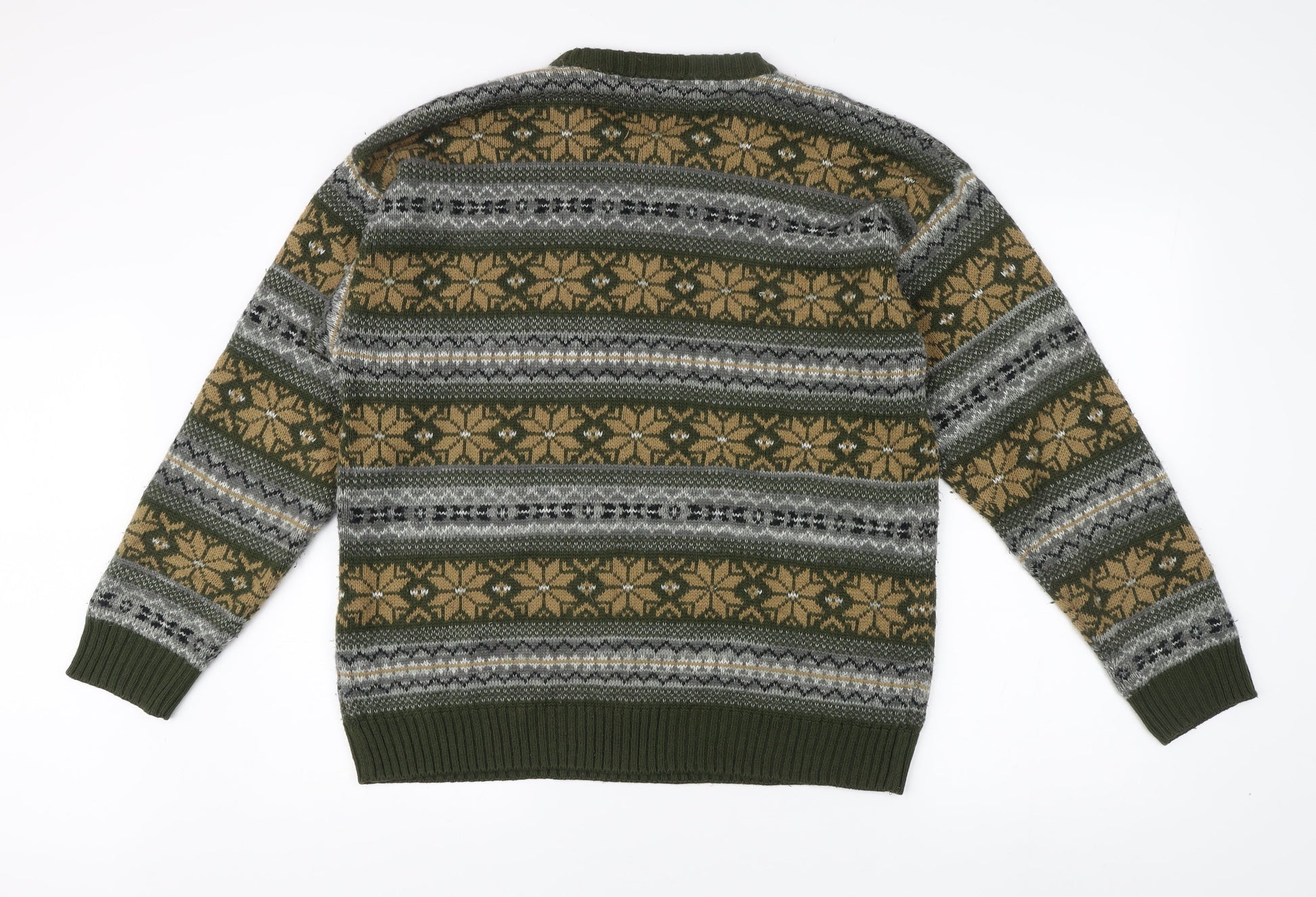 Farah Men's Green Fair Isle Pullover Jumper Size L