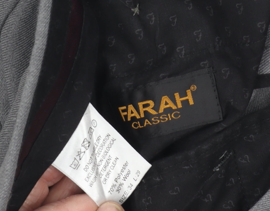 Farah Men's Grey Classic Dress Trousers, Size 34