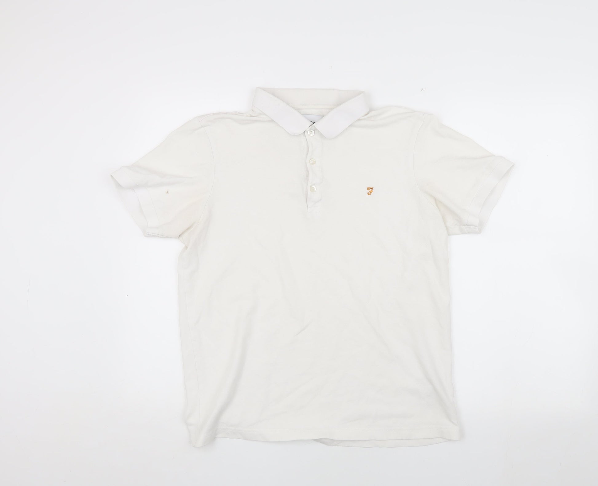 Farah Men's White Polo Shirt, Size L, Logo Accent