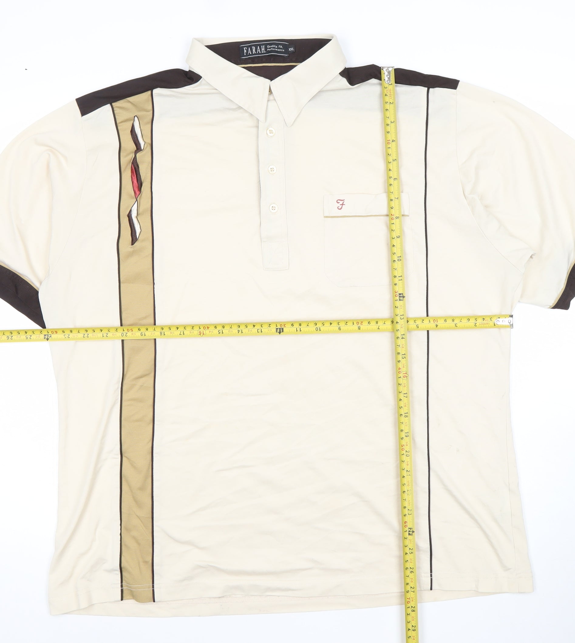 Farah Vintage Men’s Beige Brown Retro 2XL Polo Shirt Cotton Blend