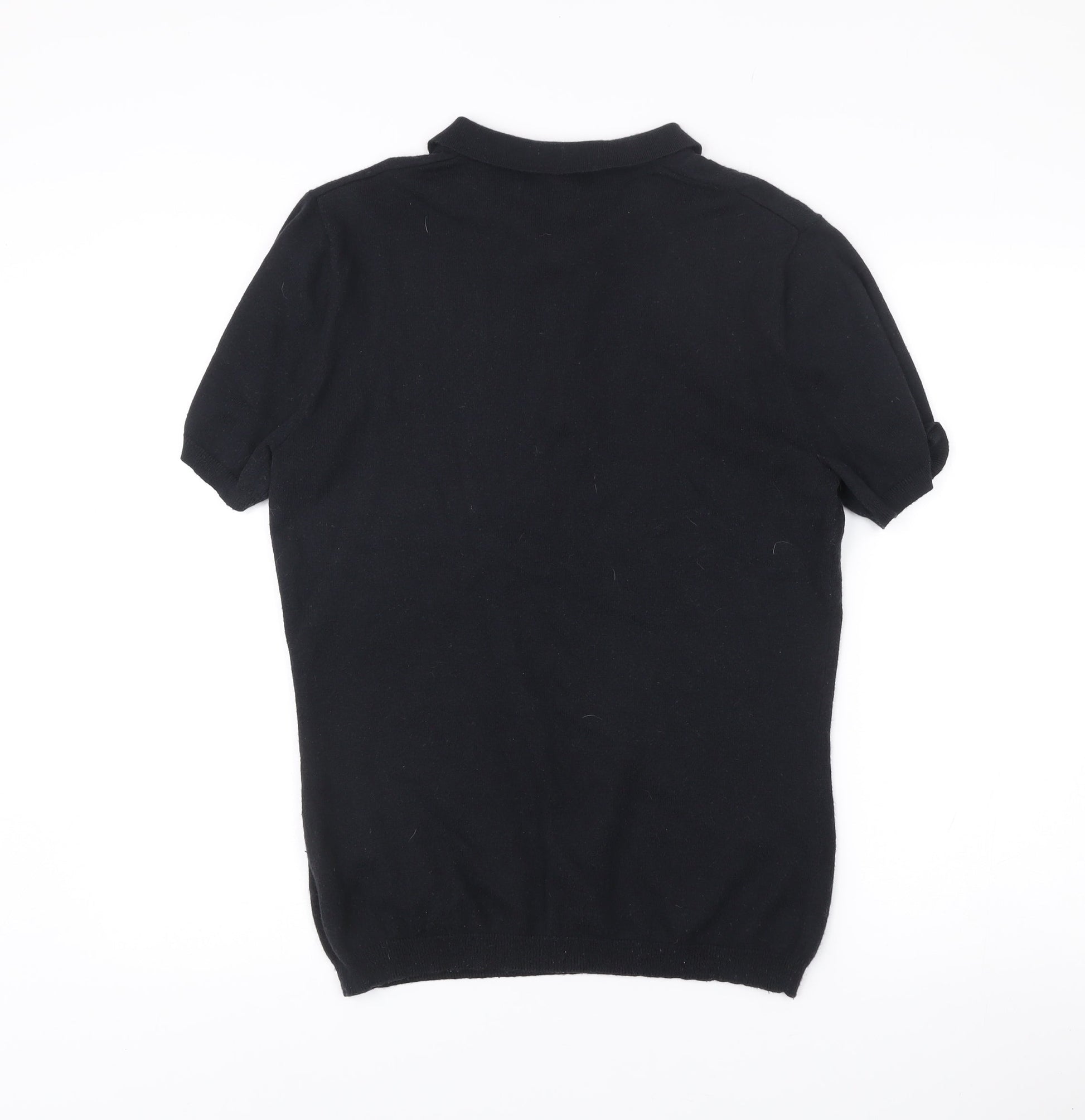 Farah Vintage Men’s Black Polo Shirt M Short Sleeve Wool Blend
