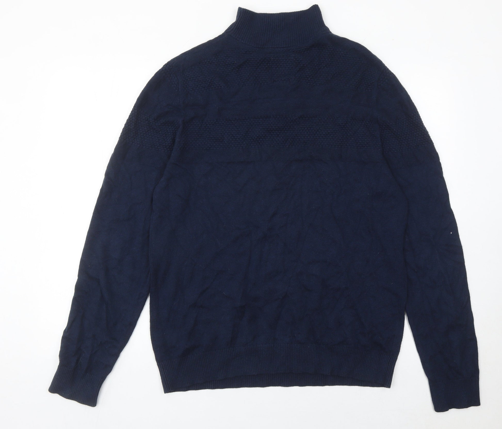 Fat Face Men’s Blue Cotton Cashmere Jumper L Quarter Zip Knit