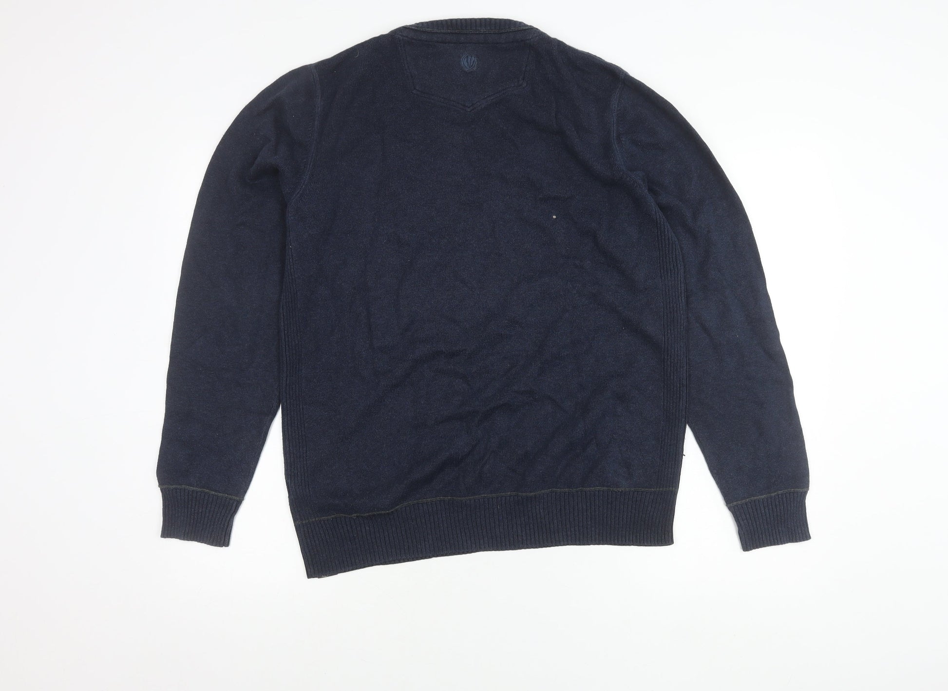 Fat Face Men’s Blue V-Neck Cotton Wool Jumper M Regular Casual