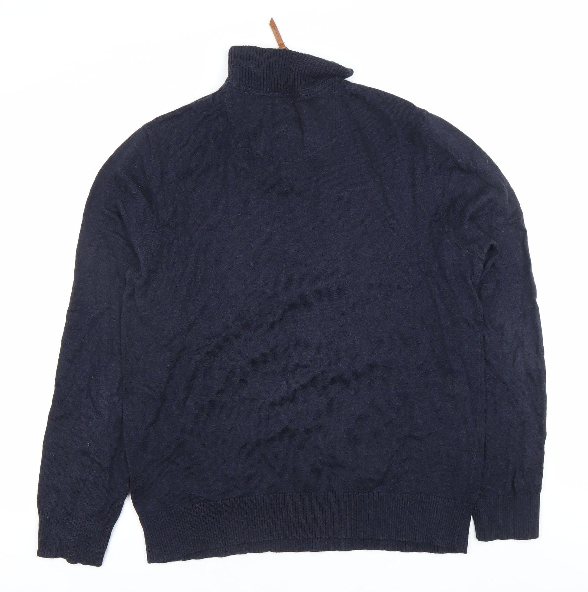 Fat Face Men’s Blue Wool Blend Full Zip High Neck Jumper Size L