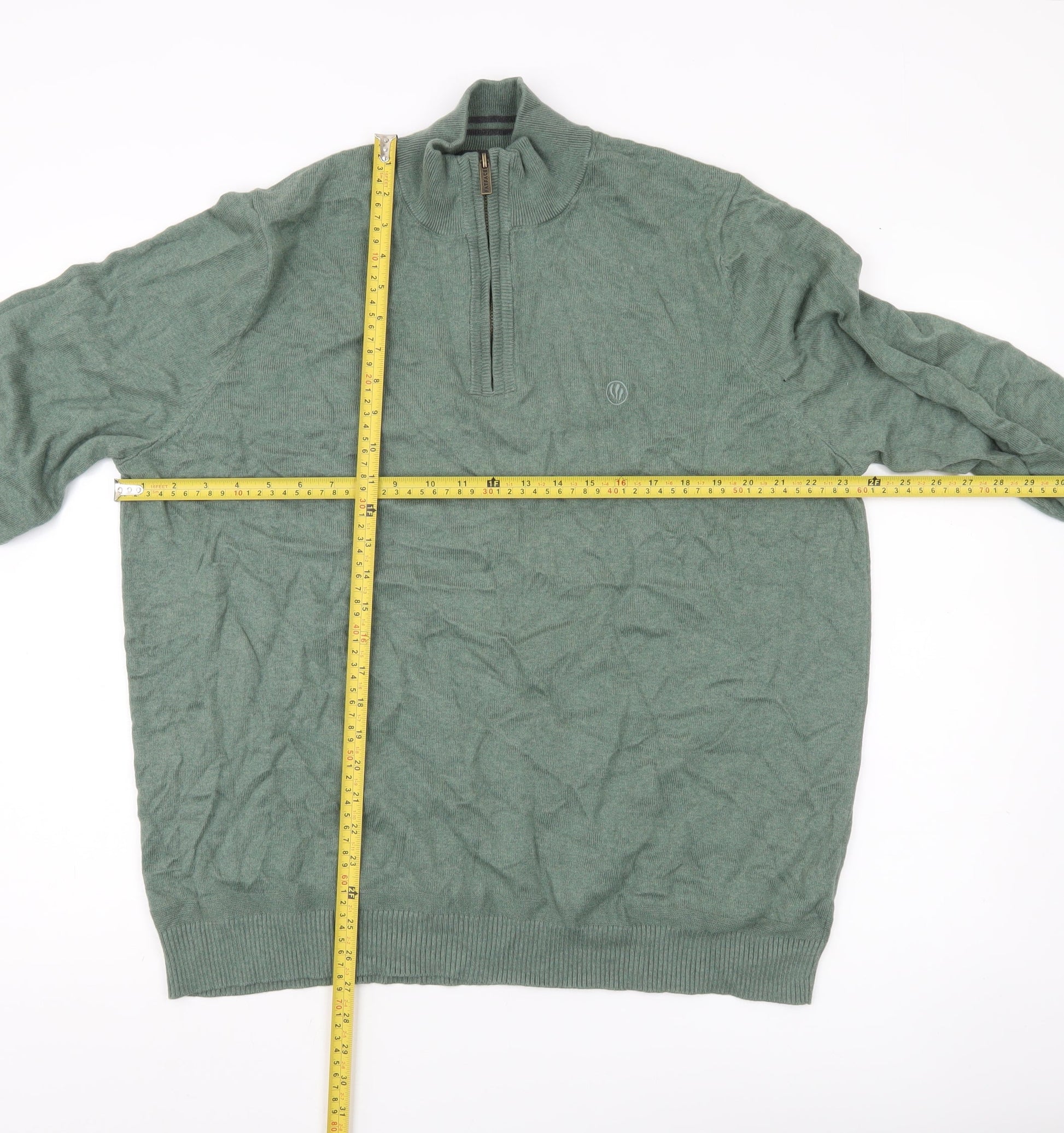 Fat Face Men's Green 2XL Pullover Half Zip Jumper Cotton Linen