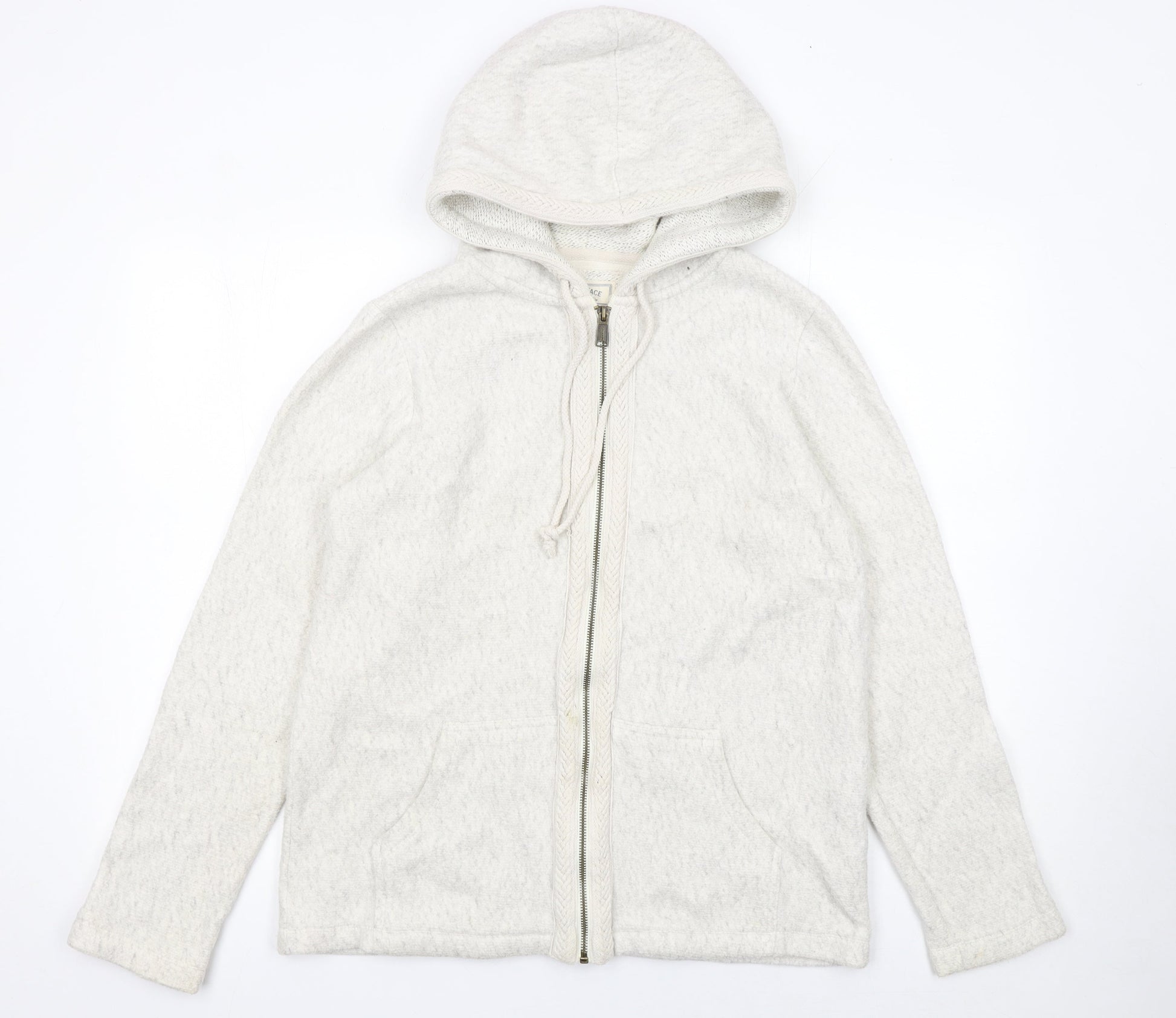 Fat Face Women Ivory Cotton Full Zip Hooded Jumper Size 10